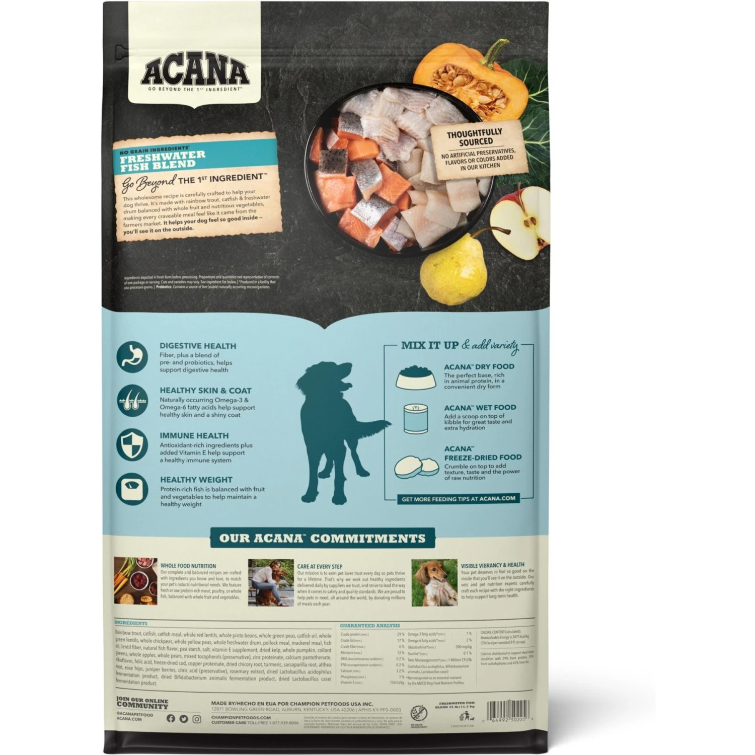 - This ACANA pet food formula balances protein-rich animal ingredients, whole fruit and nutritious vegetables help your dog maintain a healthy weight.