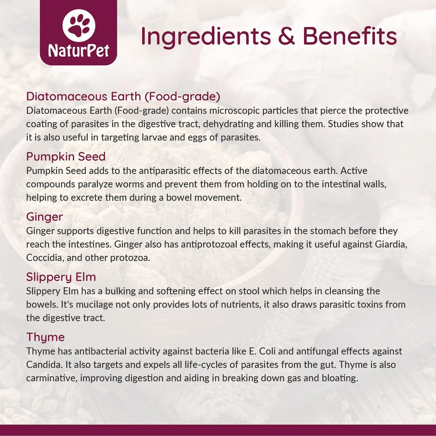 - Supports optimal gut health, creating an intestinal tract that isn’t welcoming to parasites and worms, and may help to minimize gas and discomfort.