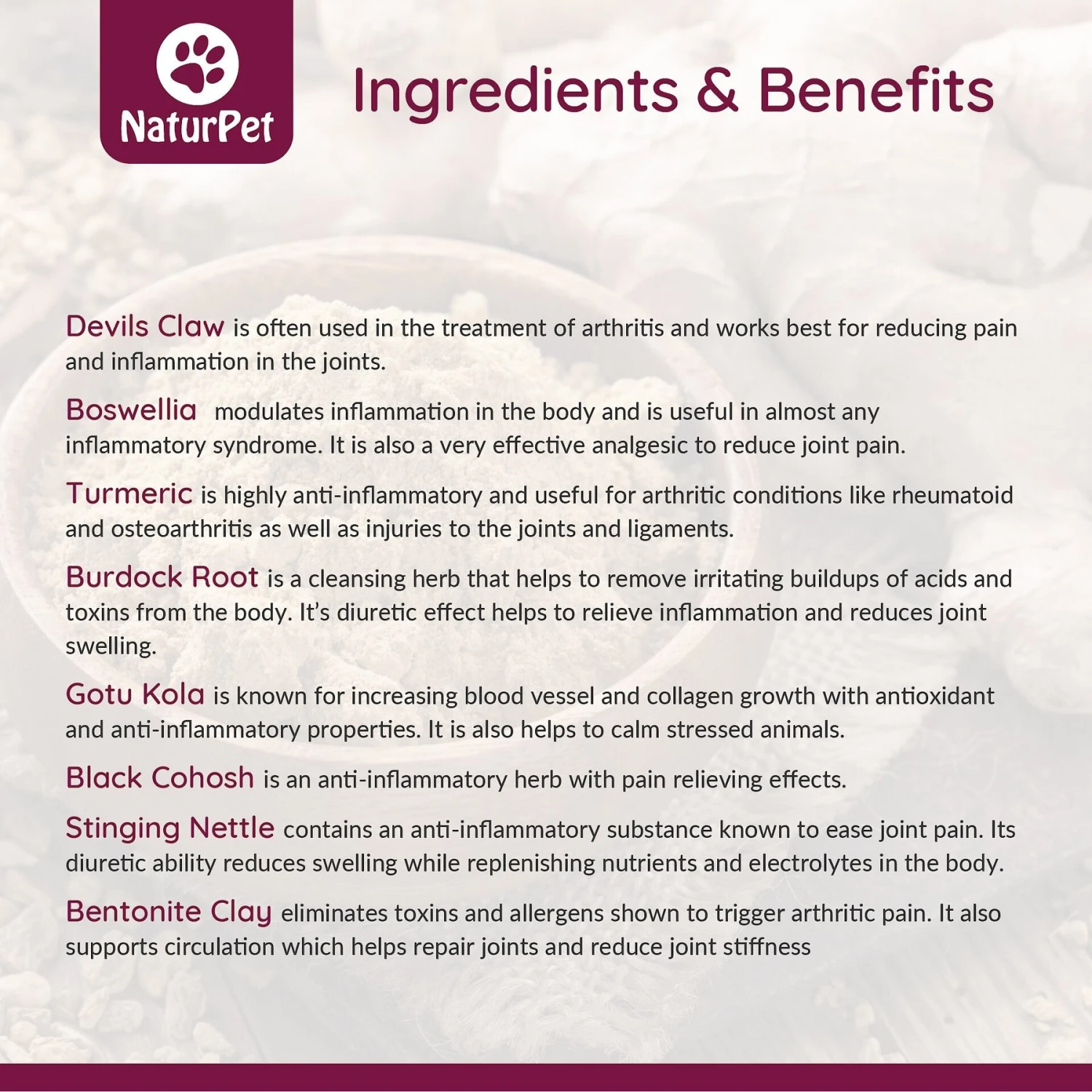 - Natural ingredients, including devil’s claw and Boswellia, supports mobility so your pet can enjoy his favorite activities.