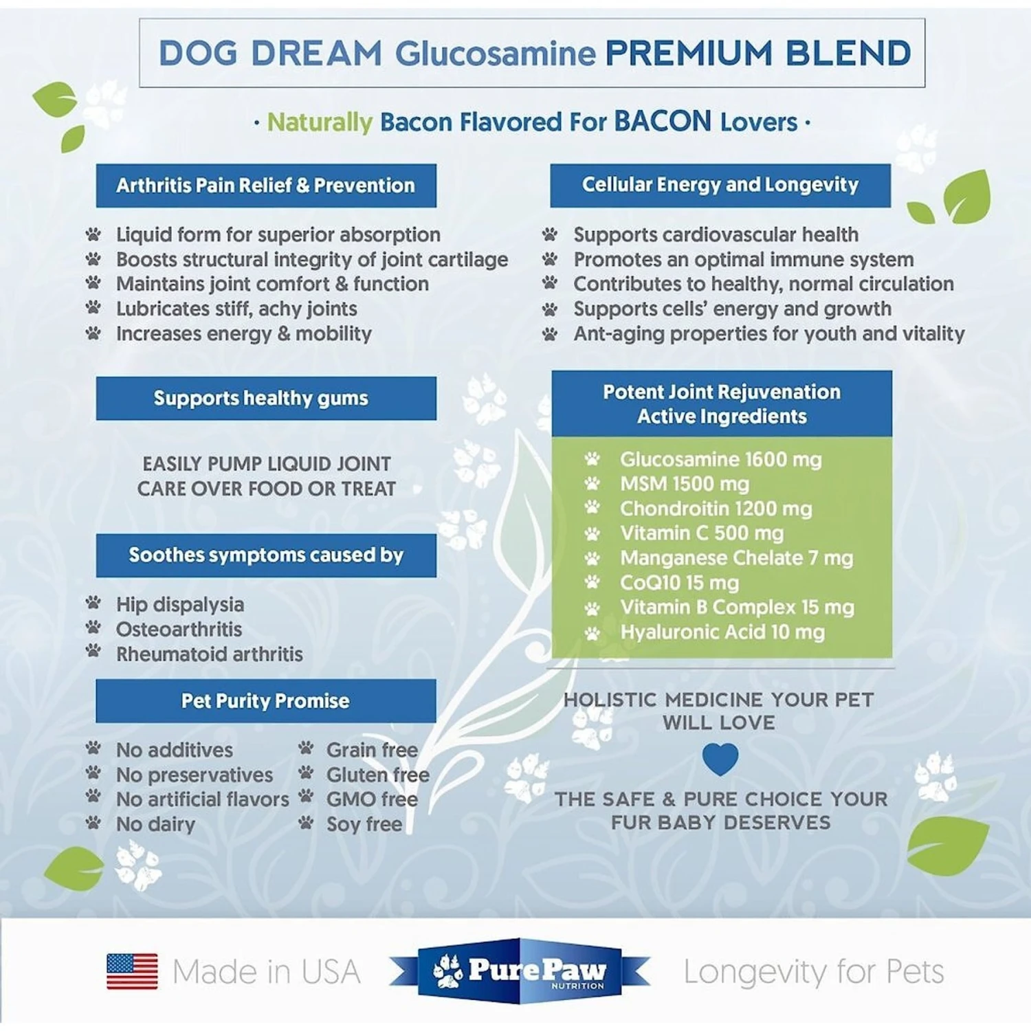 Best Paw Nutrition Premium Dream Glucosamine Joint Support Dog & Cat Liquid Supplement, Bacon Flavor