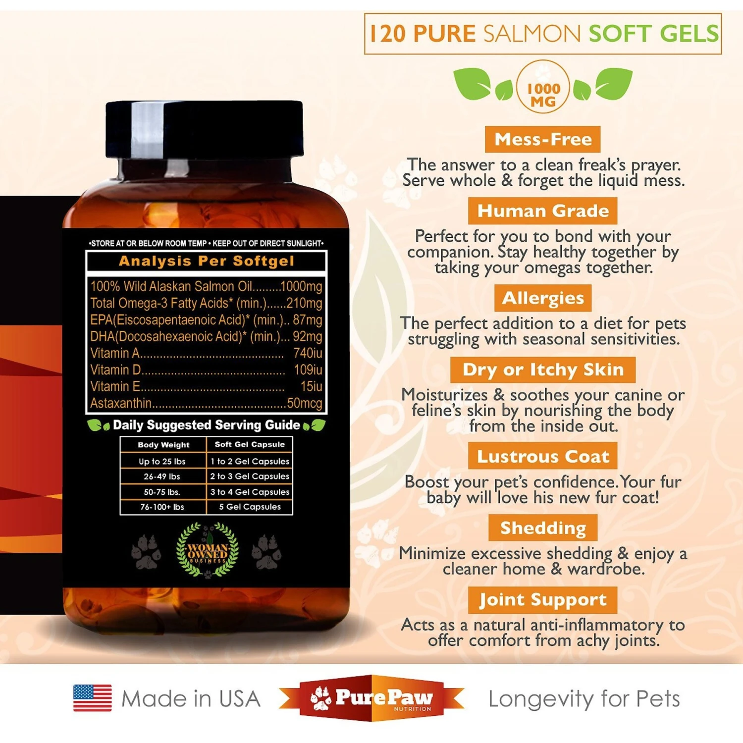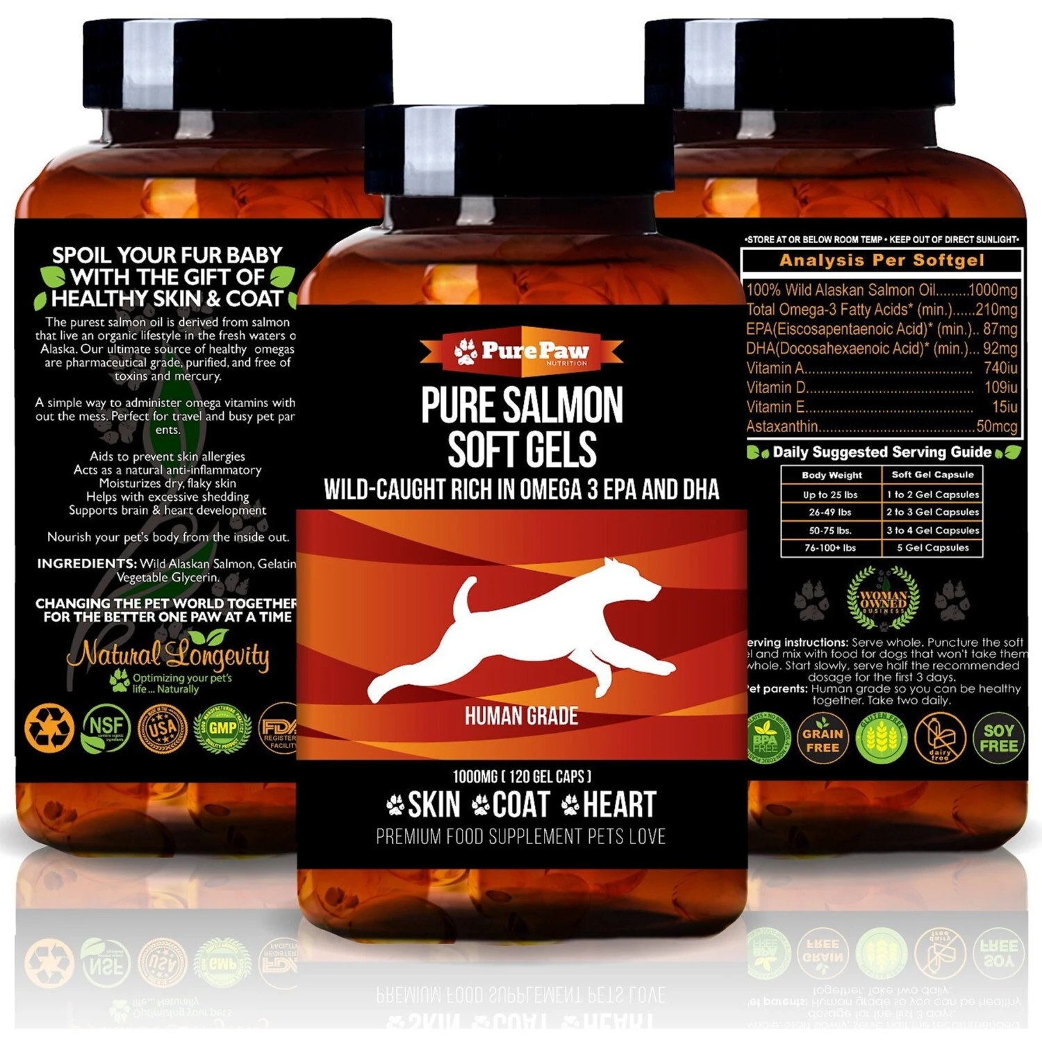 - Fish oils vitamins made from pure Alaskan salmon is great for dogs over 25 pounds.