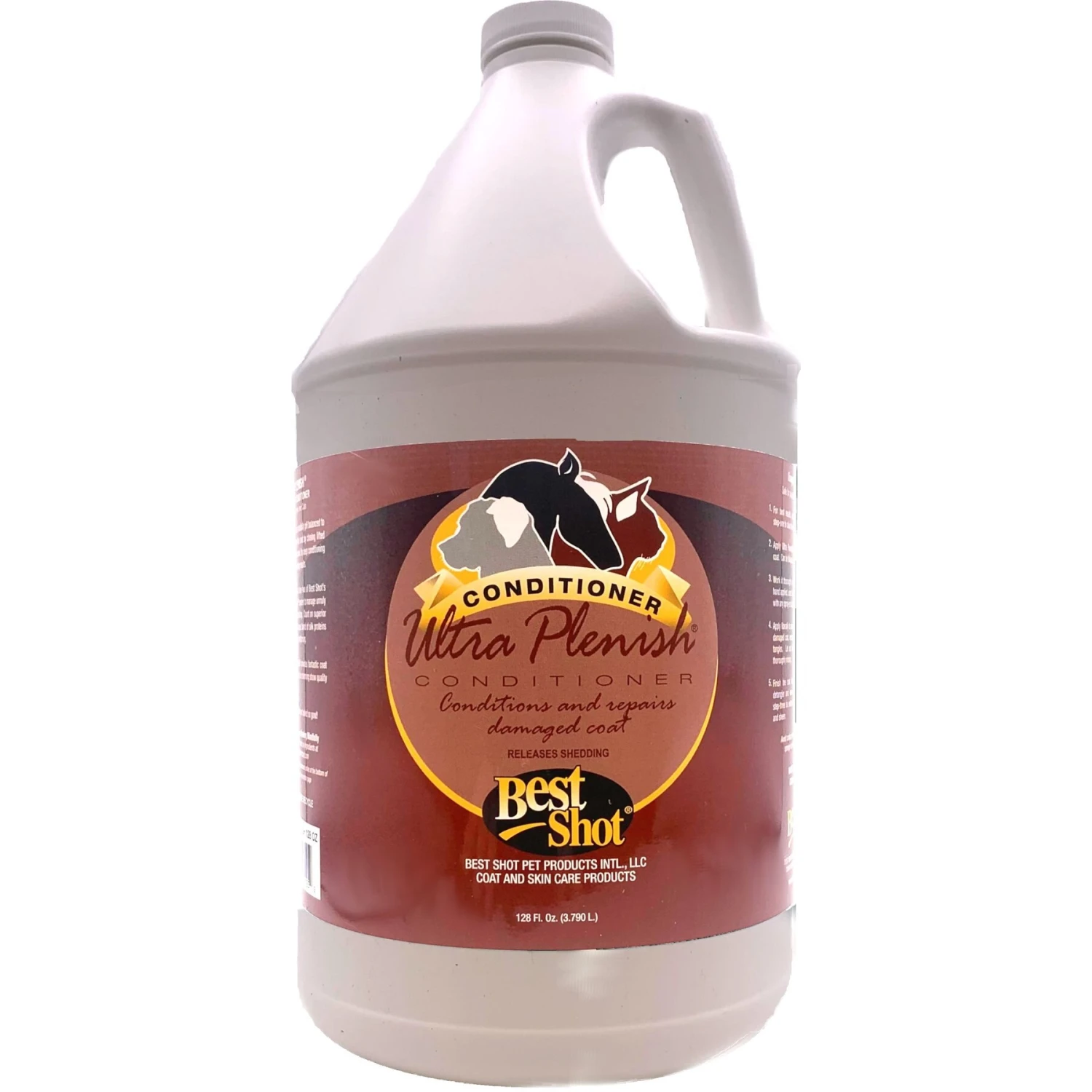 Best Shot’s Ultra Plenish conditioner is the second step in your pet’s coat-care arsenal. After shampooing with Best Shot’s Ultra Wash, apply this protein-enriched conditioner to add hydration and encourage detangling. Fortified with silk amino acids, this intense hydrator helps to release mats and undercoat to encourage deshedding during bath time. Use this concentrated formula at 3:1 to tackle mats or at 5:1 for general conditioning. Safe for use on dogs and cats of all ages, this deep conditioner can help to improve the overall health of your furbaby’s coat with regular use.