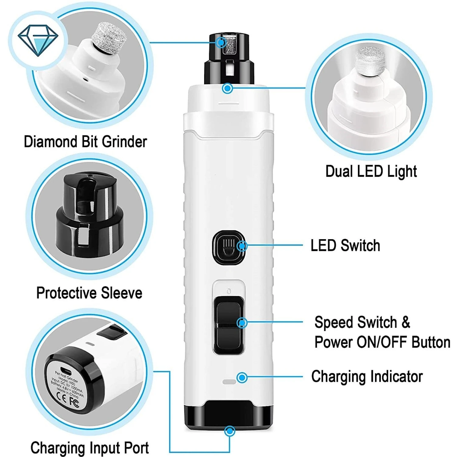 Bousnic LED Dog & Cat Nail Grinder, White