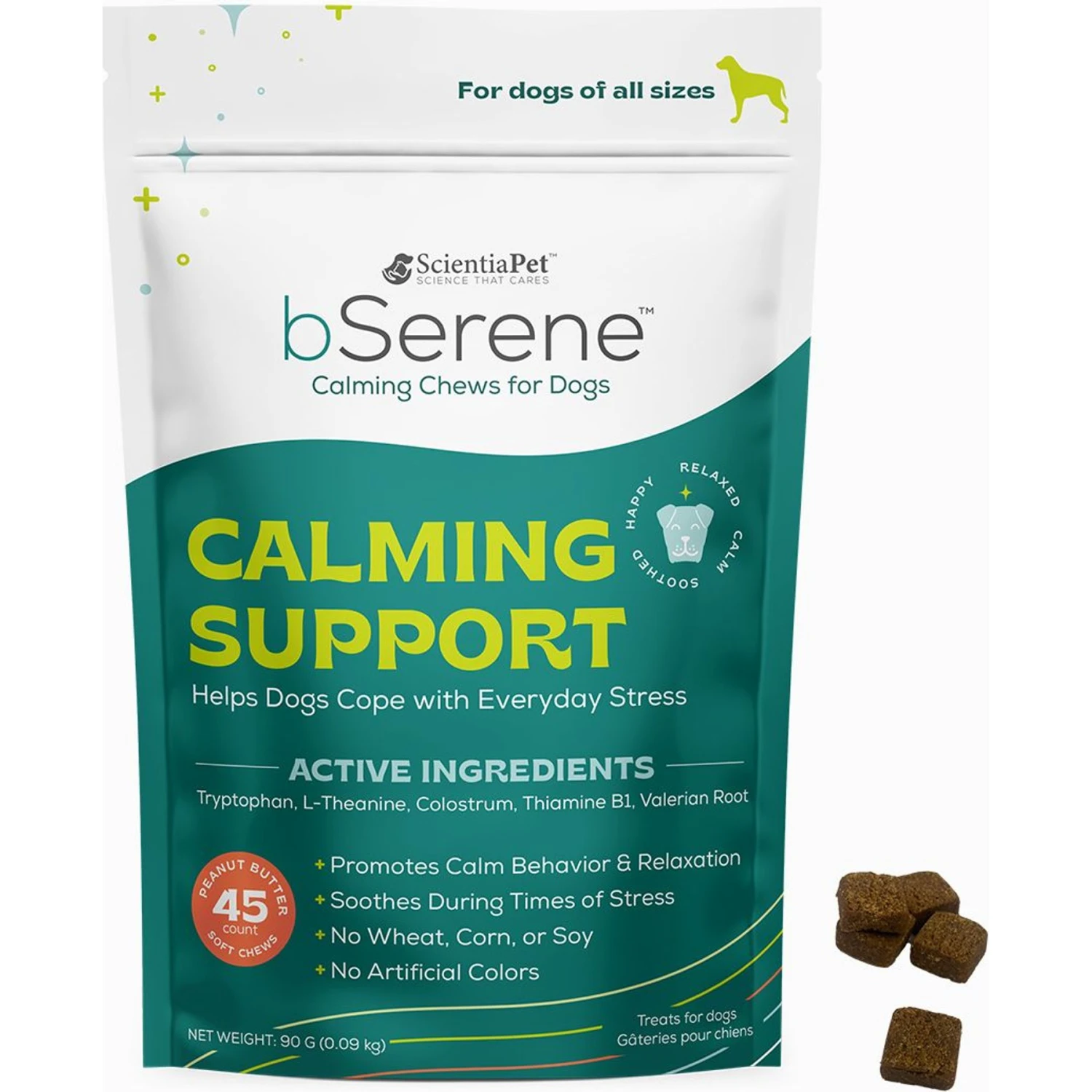 BSerene Calming Peanut Butter Dog Chew Supplement, 5-oz Bag, 45 Count