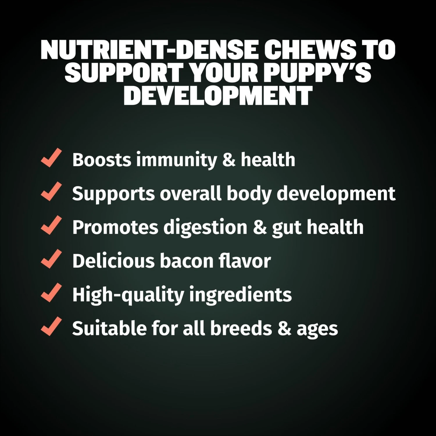 - These supplements are a fast and easy way to support your puppy’s healthy growth!
