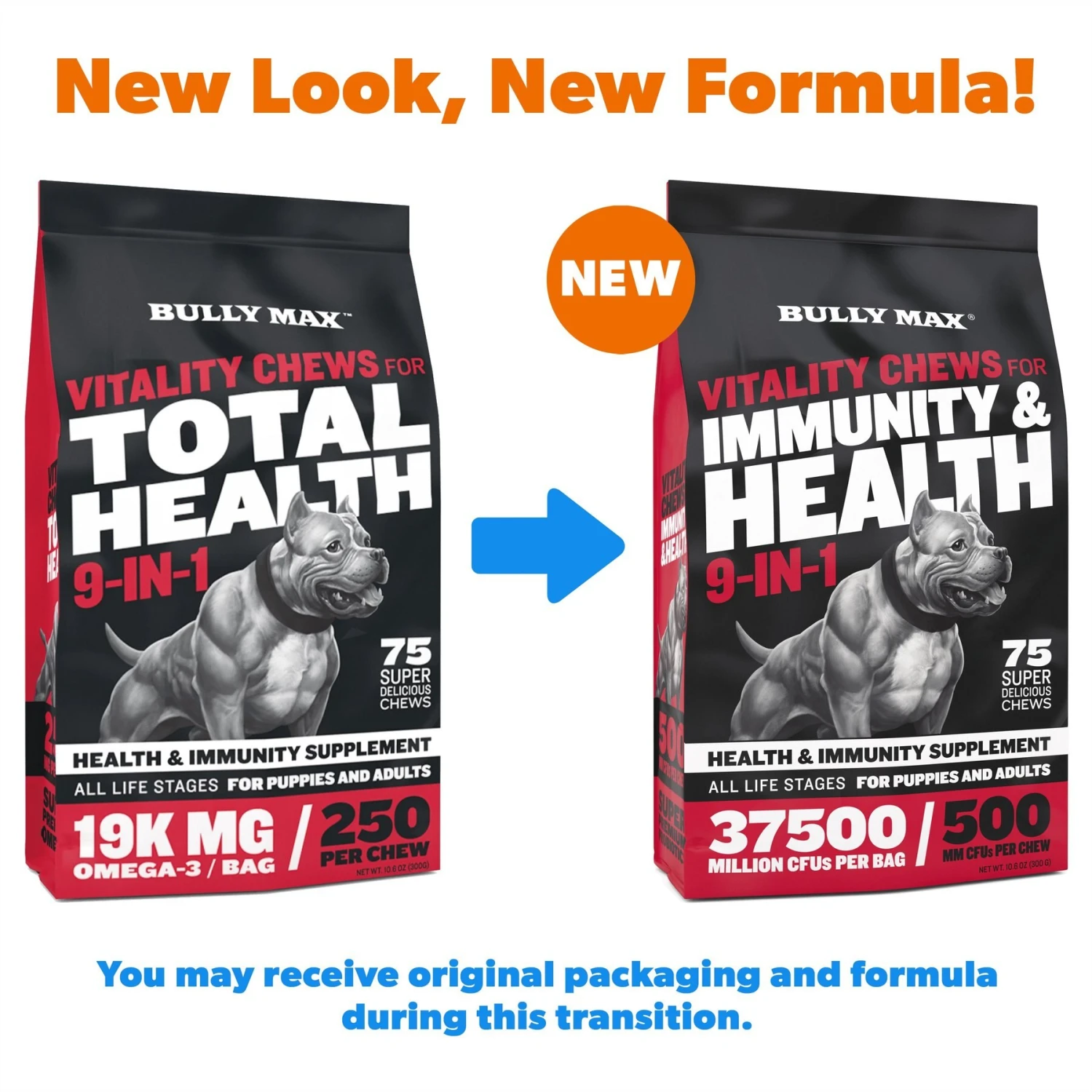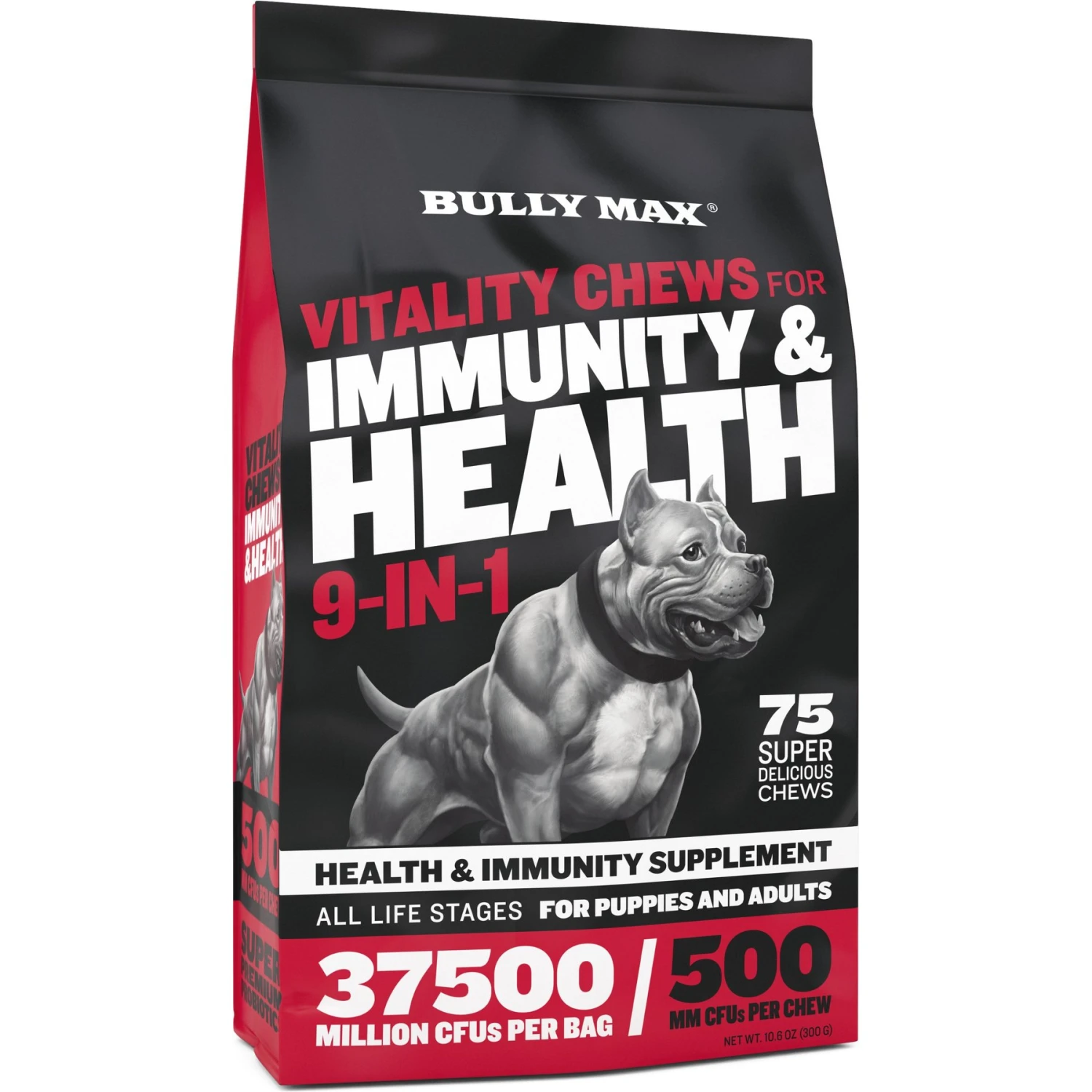Bully Max Vitality Chews For Immunity & Health 9-in-1 Supplement For Dogs, 10.6-oz Pouch