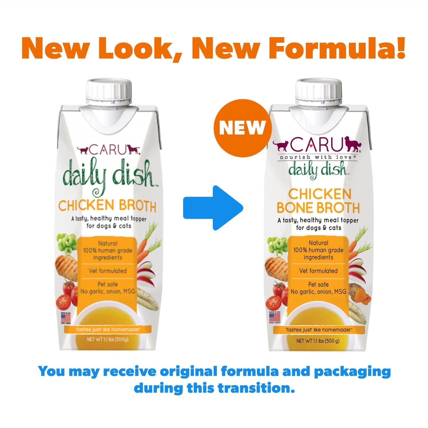 Caru Daily Dish Chicken Broth Human-Grade Dog & Cat Wet Food Topper, 1.1-lb Bottle