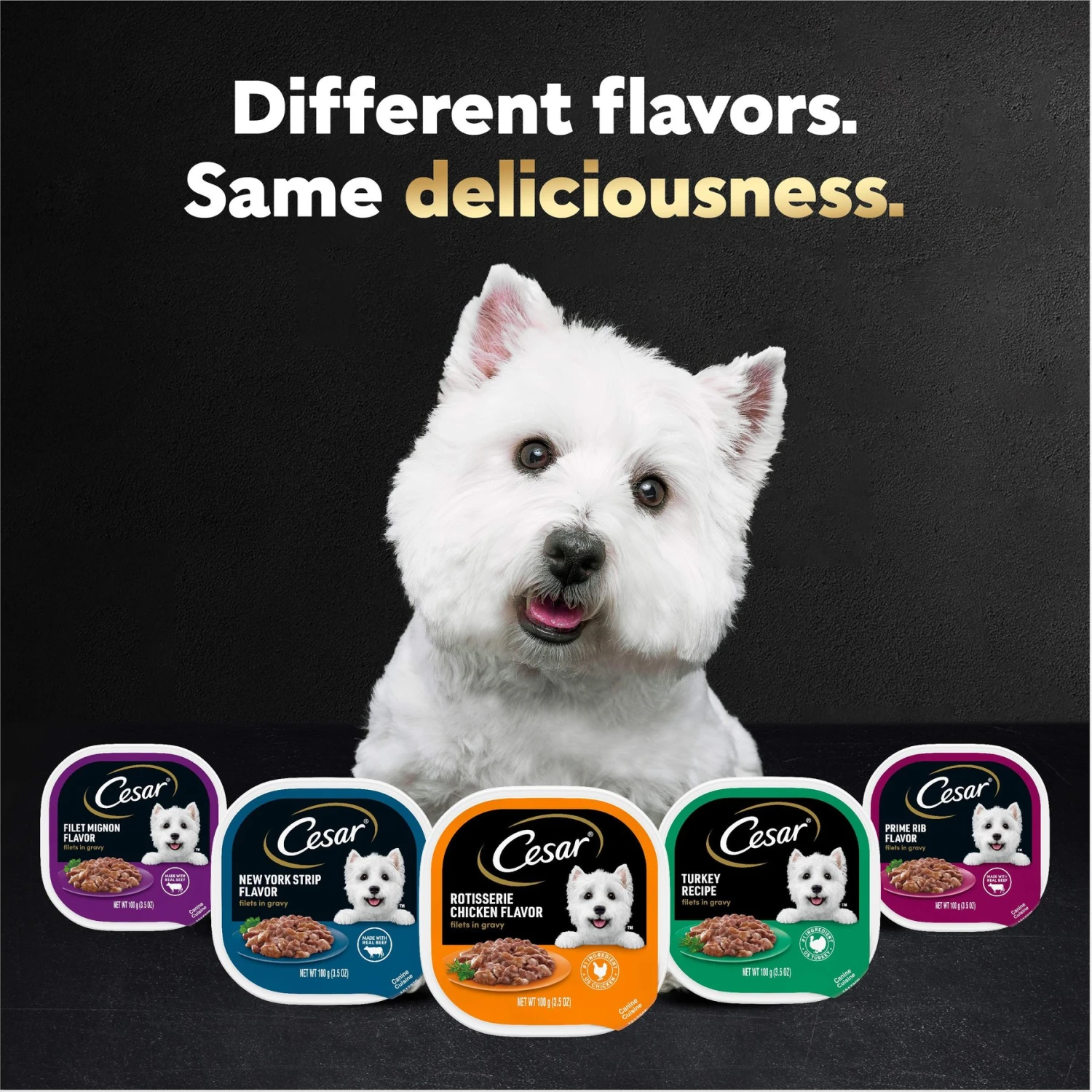 Cesar Filets In Gravy Prime Rib Adult Small Breed Wet Dog Food Trays
