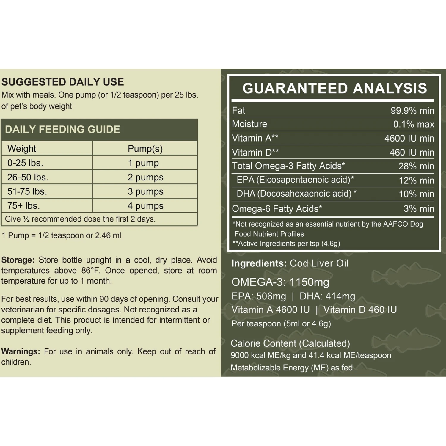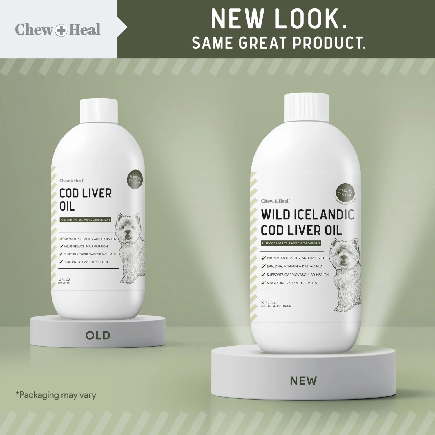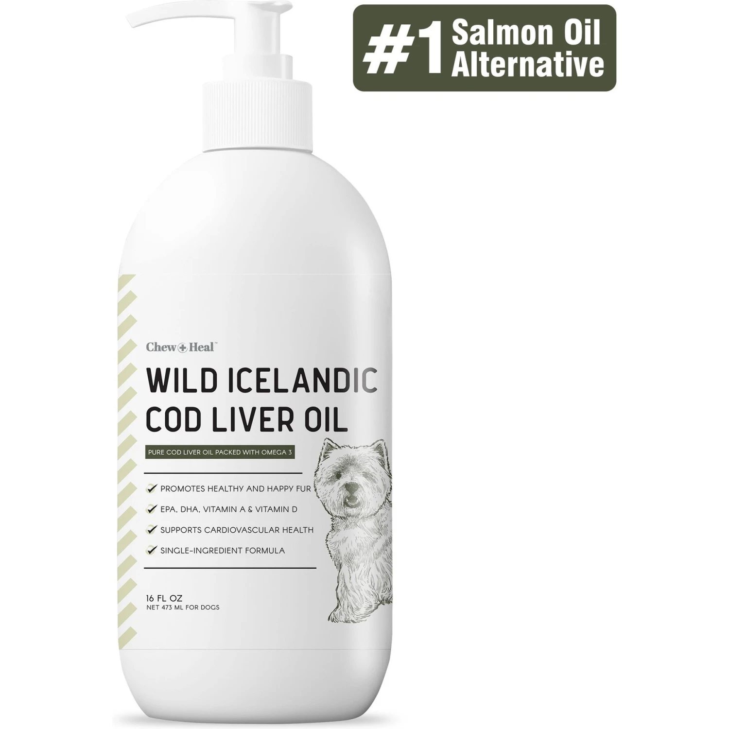 Chew + Heal Pure Cod Liver Oil Omega Skin & Coat Liquid Supplement For Dogs, 16-oz Bottle