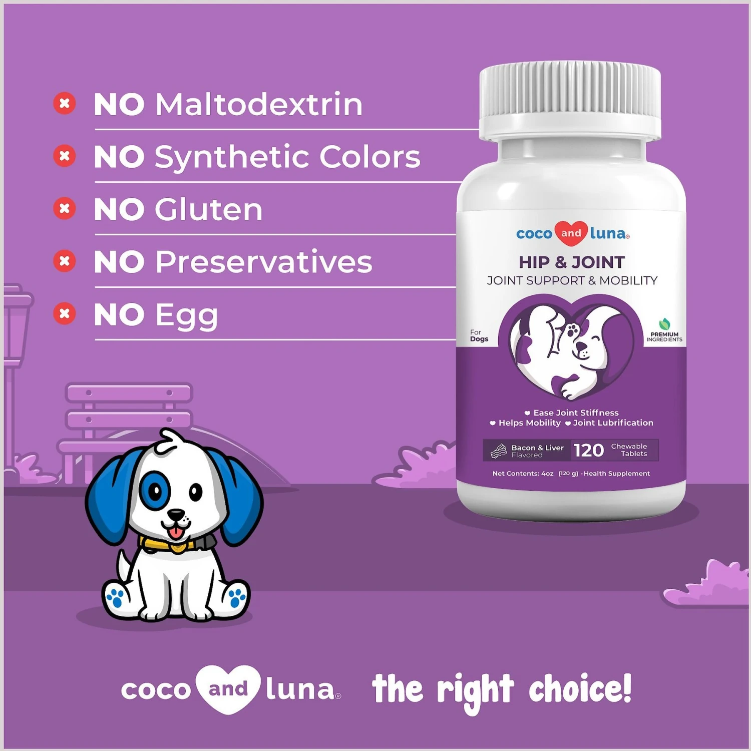 Coco And Luna Hip & Joint Bacon & Liver Flavor Dog Supplement, 120 Count