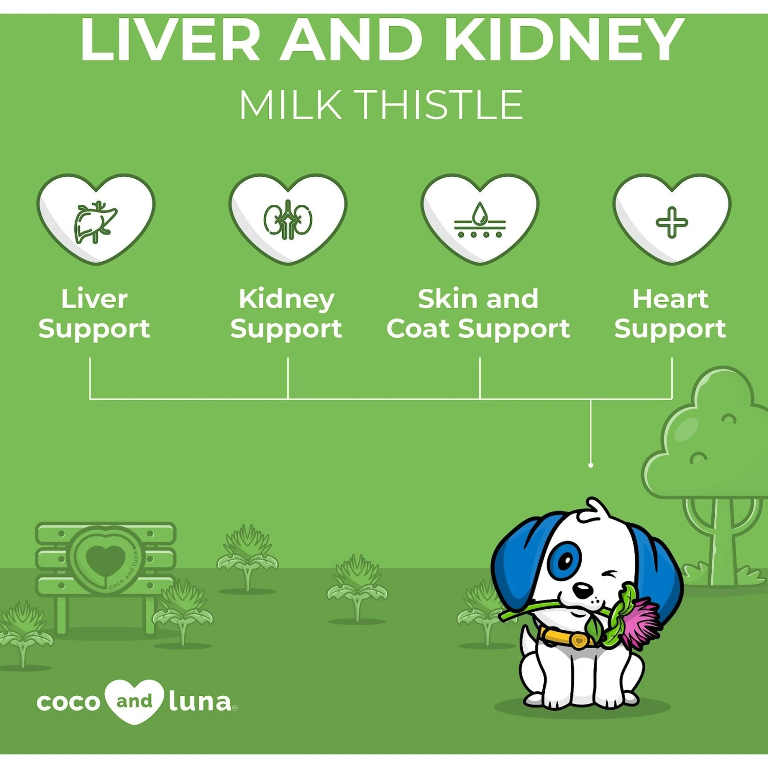 Coco And Luna Liver & Kidney Milkthistle Bacon & Liver Flavor Dog Supplement, 120 Count