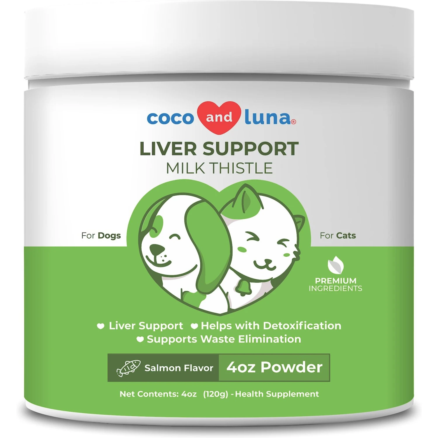Coco And Luna Liver Support Organic Milk Thistle Salmon Flavor Powder Dog & Cat Supplement, 4-oz Jar