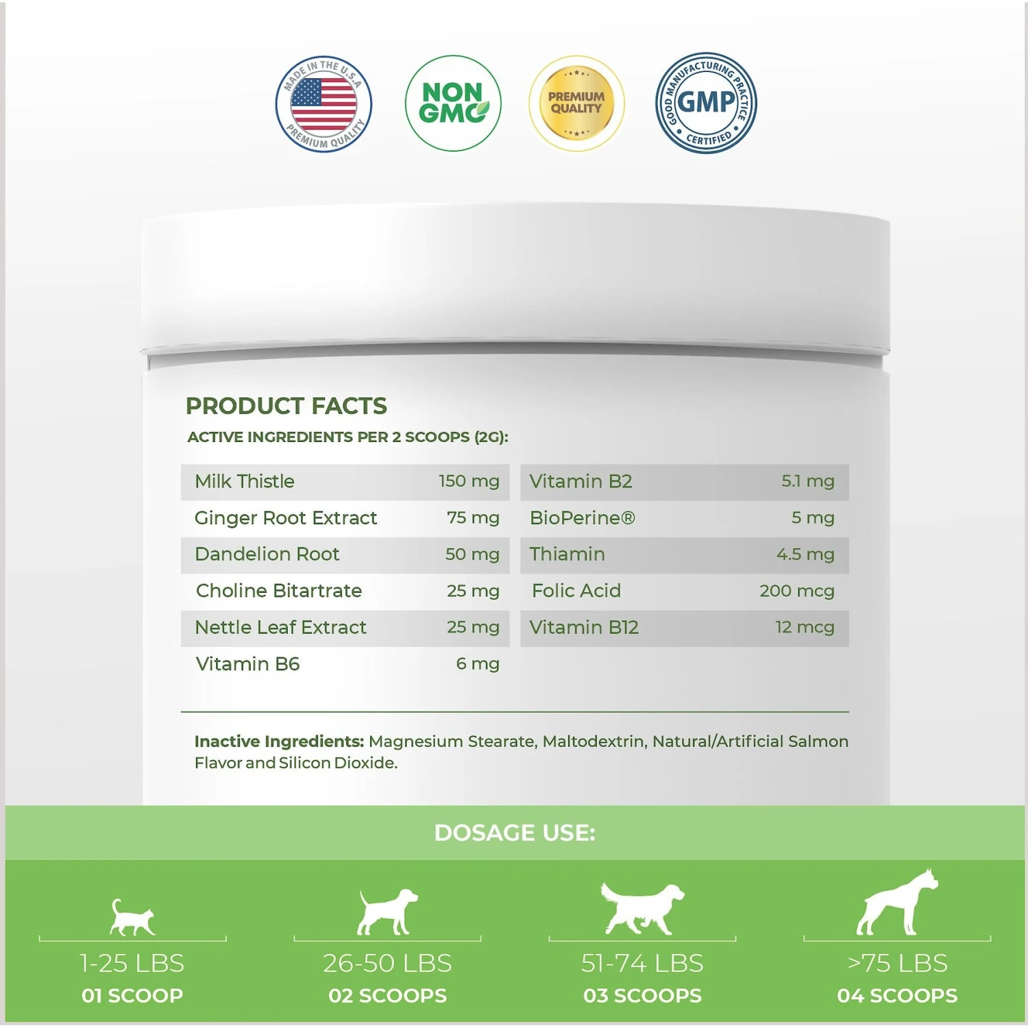 - Easy to administer––just mix the powder into your pet’s food daily.