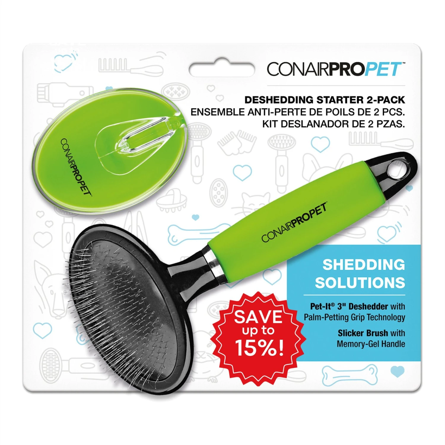 ConairPRO Deshedding Starter Value Pack Cat & Dog Grooming Tool, 2-Pack, Green