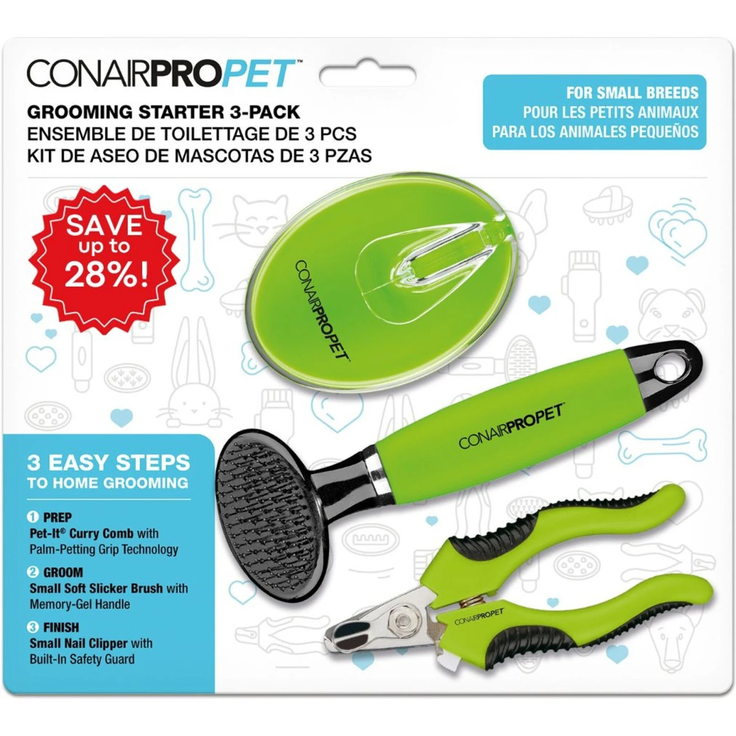 ConairPROPET Small Dog Grooming Starter Value Pack, 3-Pack, Green