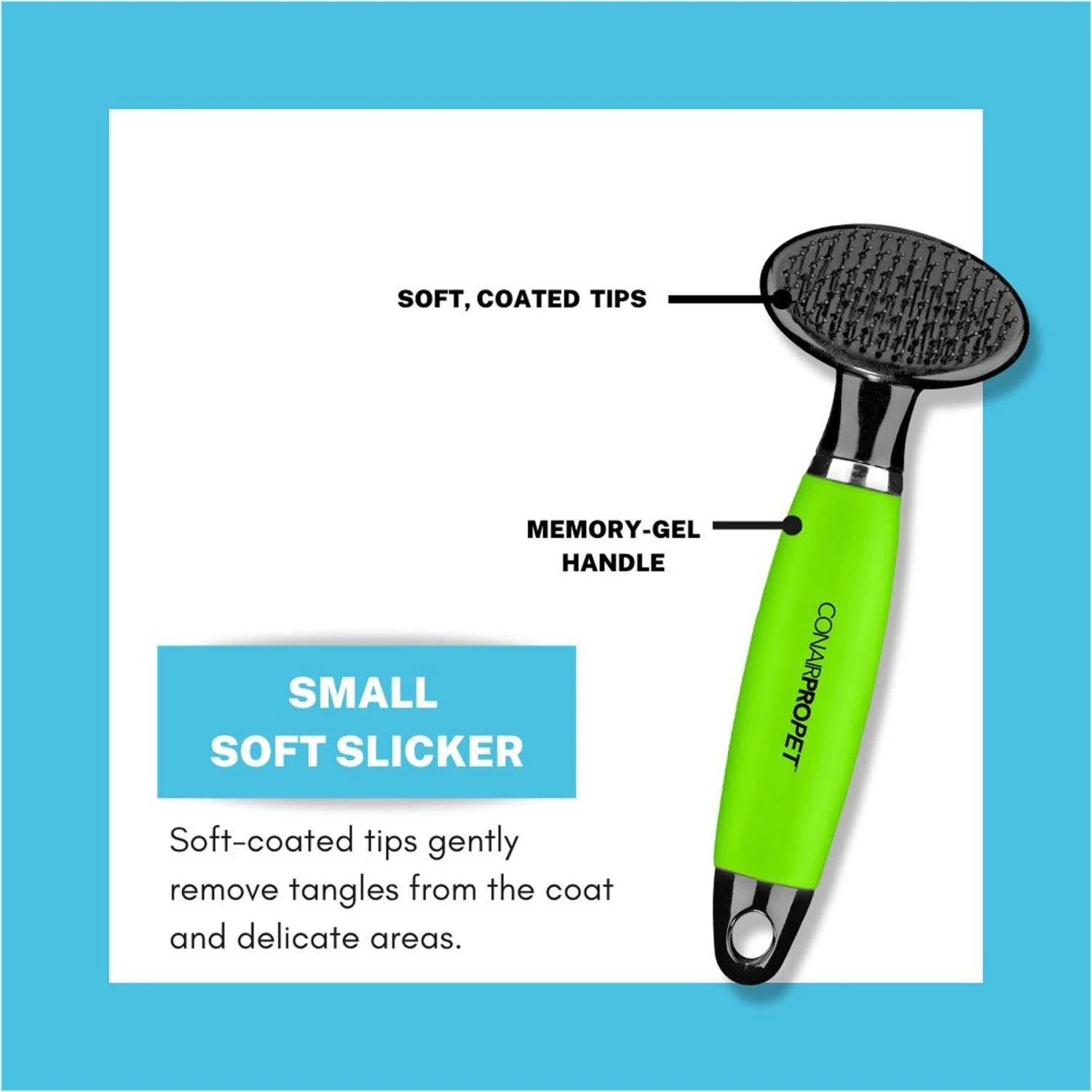 - Features reinforced, coated tips so the Small Slicker will not irritate your pet’s skin during detangling.