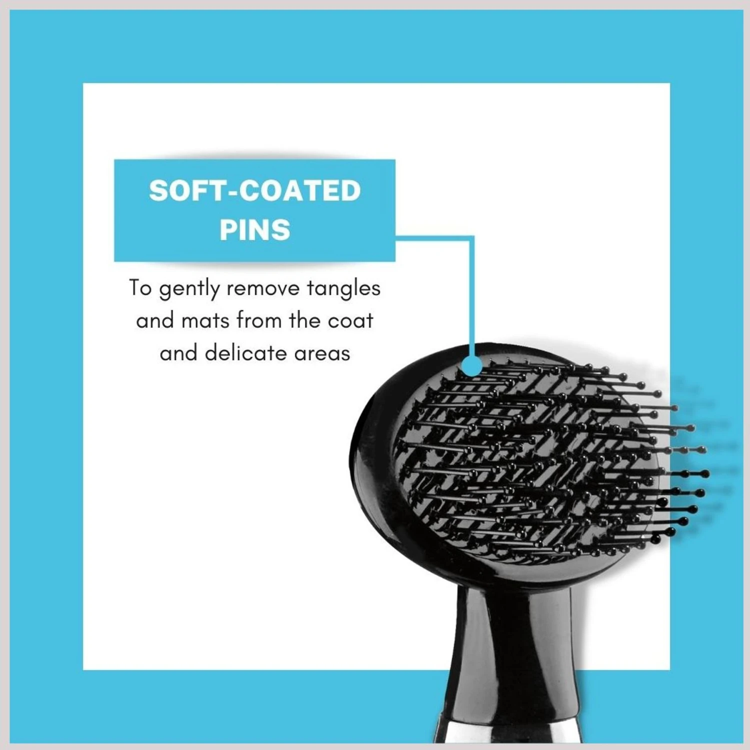 - This brush can also be used to fluff the coat, simply brush against the direction of hair growth to provide volume to pet’s coat.