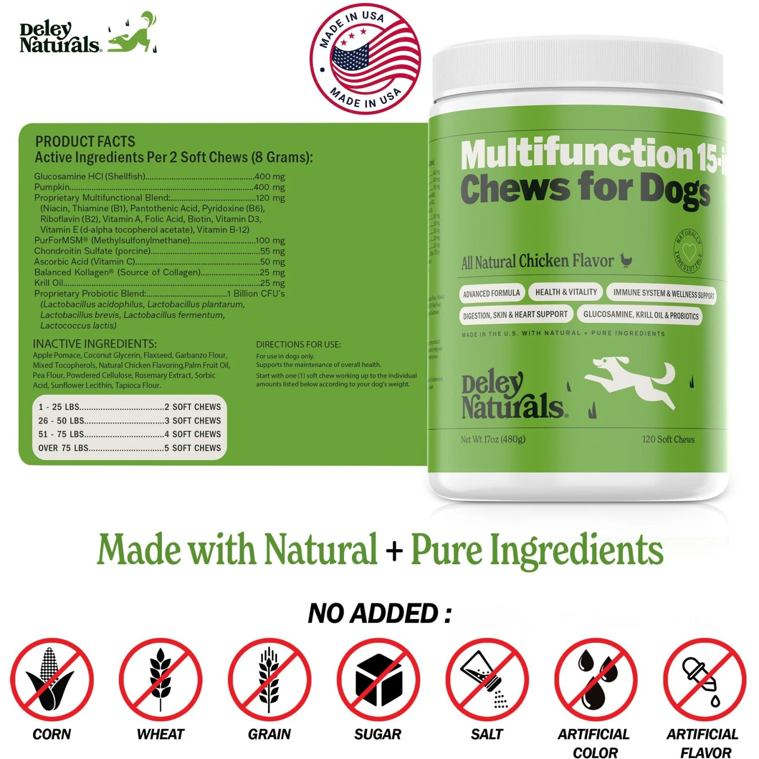 Deley Naturals 15-in-1 Multivitamin Chicken Flavor Dog Vitamin, 17-oz Bag, 120 Count