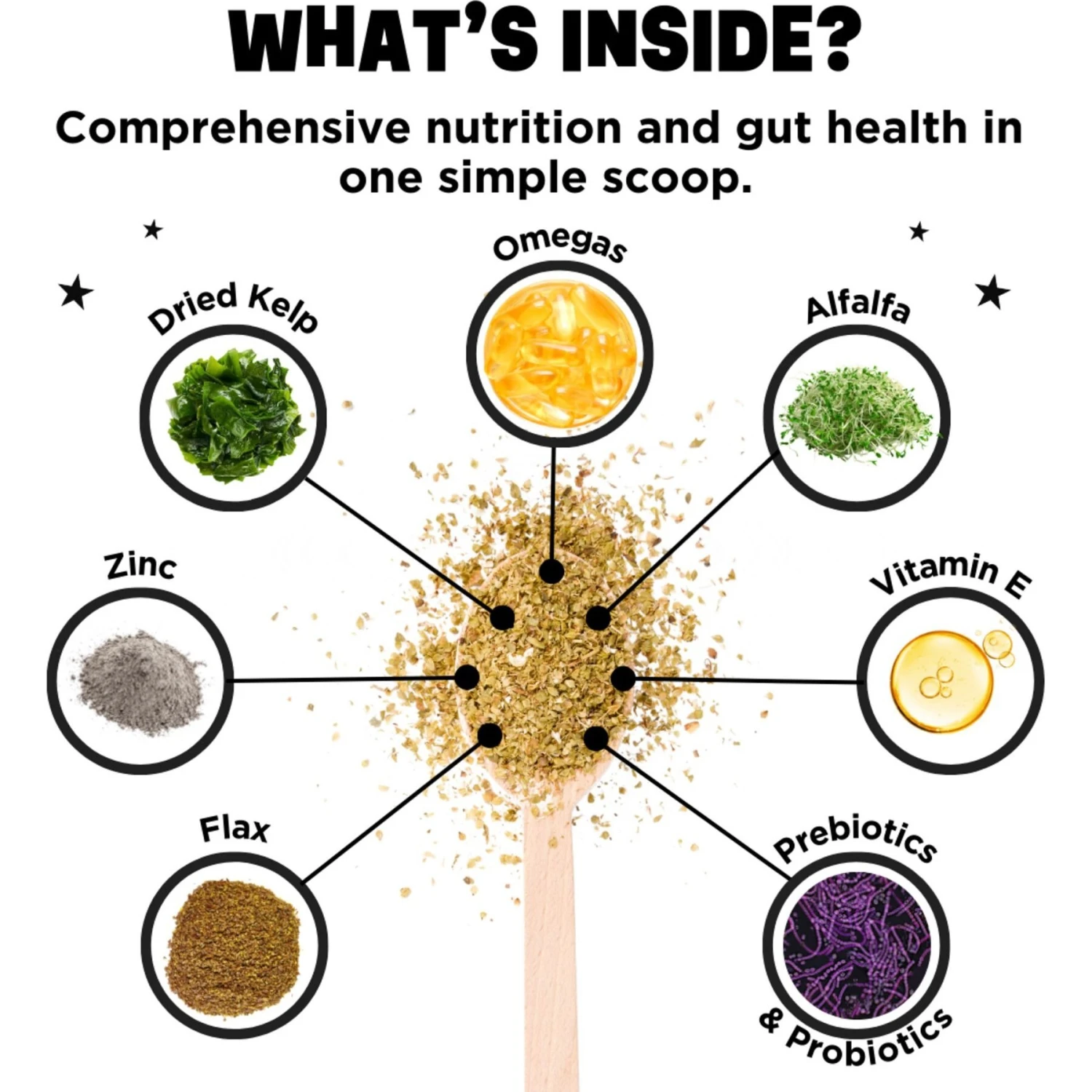 - Contains essential prebiotics and probiotics to help support digestion and maintain a healthy gut.