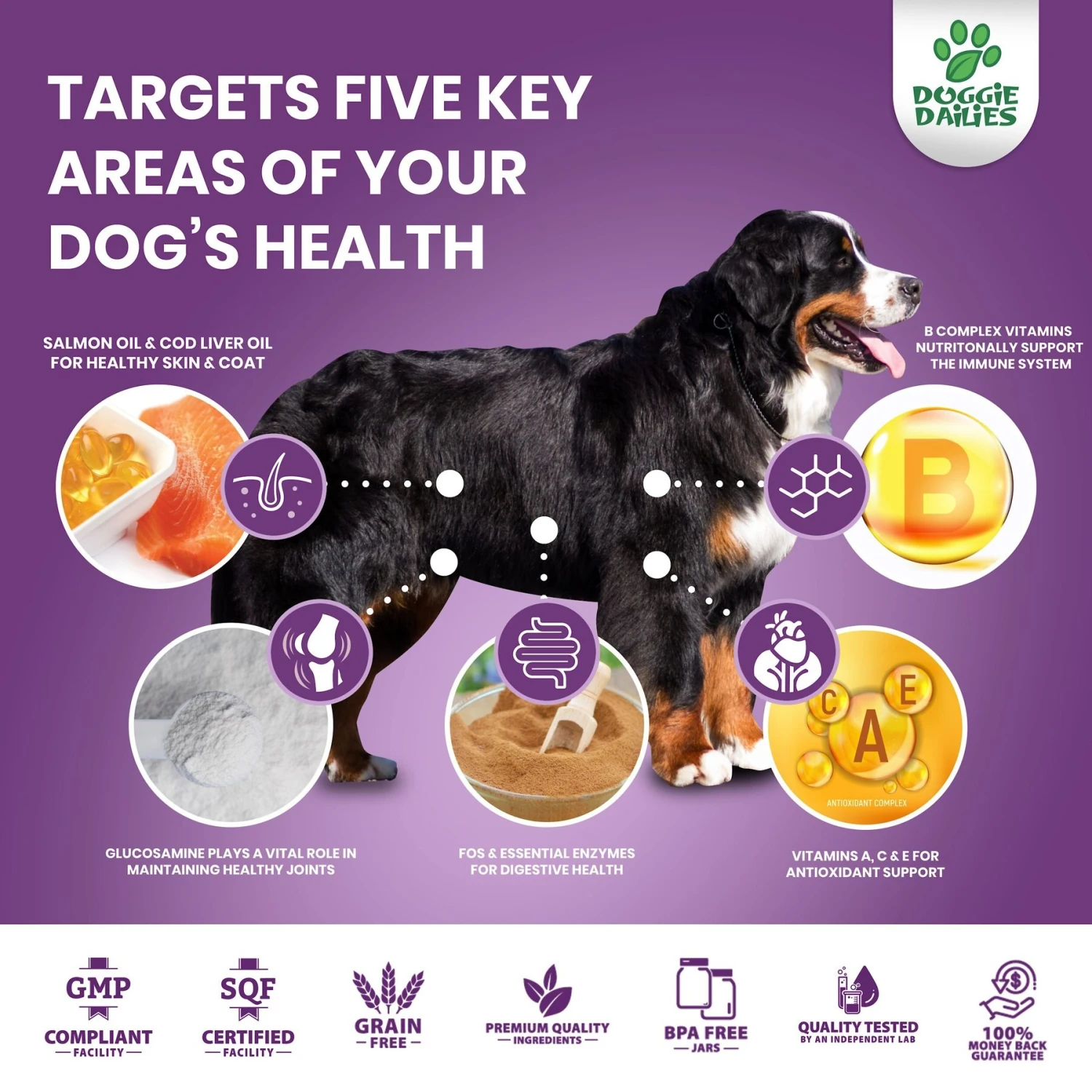 - Features glucosamine to promote strong, flexible joints.