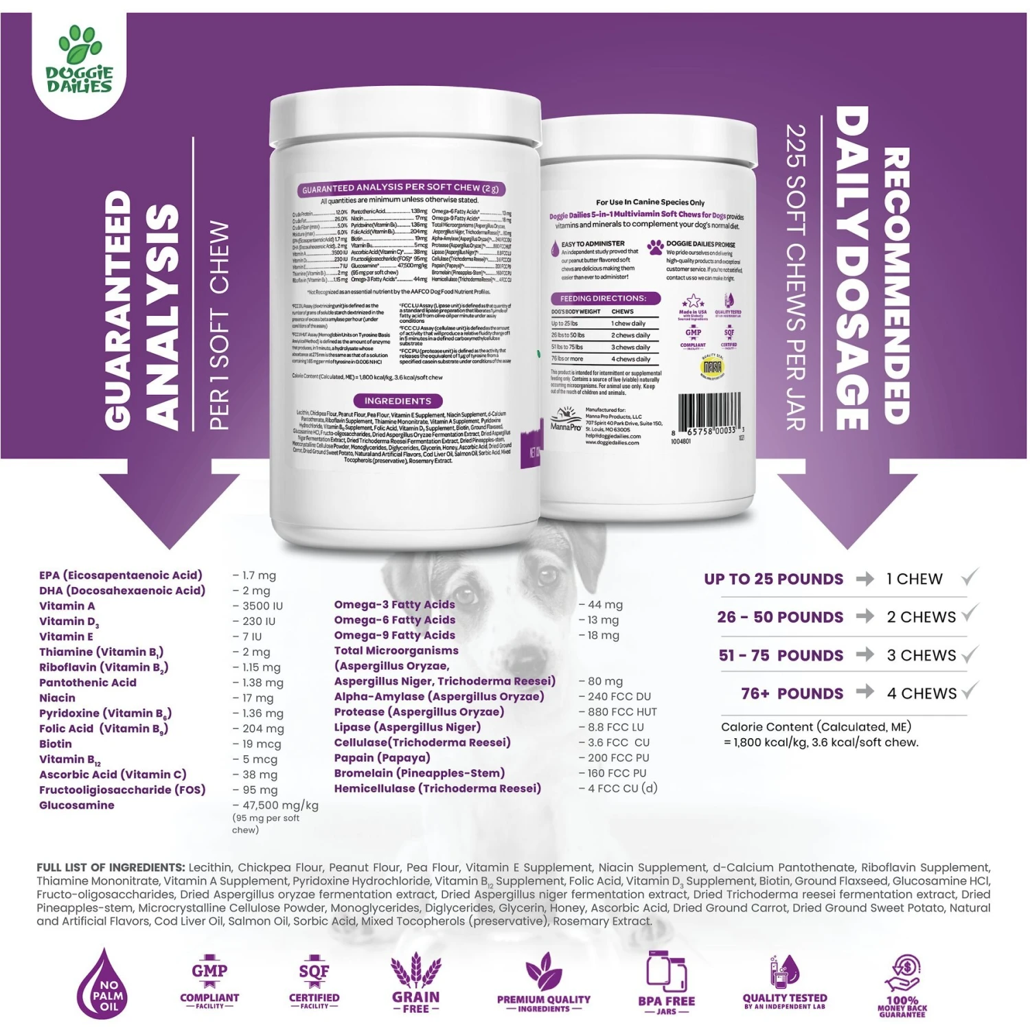 Doggie Dailies 5-in-1 Multivitamin Soft Chew Dog Supplement, 225 Count