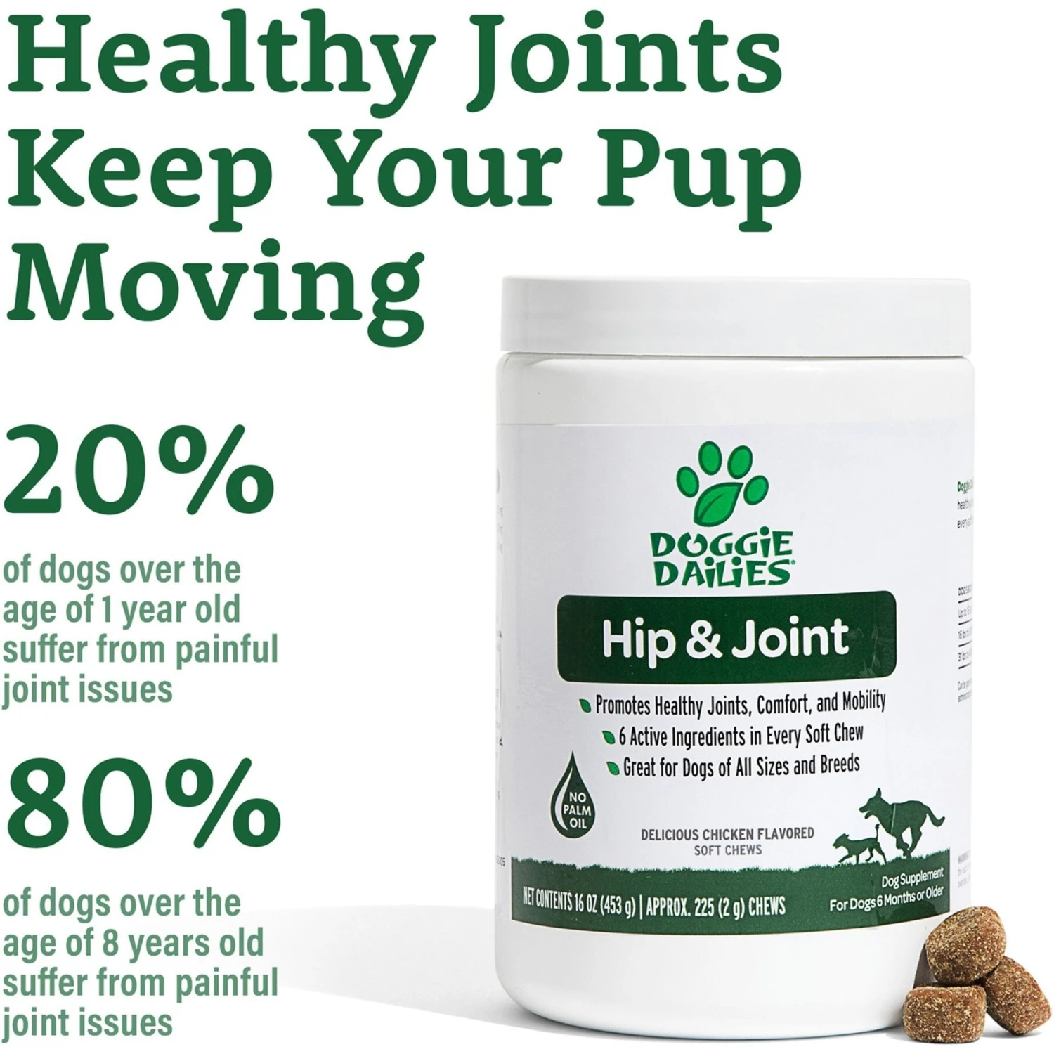 Doggie Dailies Advanced Hip & Joint Chicken Flavored Soft Chew Joint Supplement For Dogs