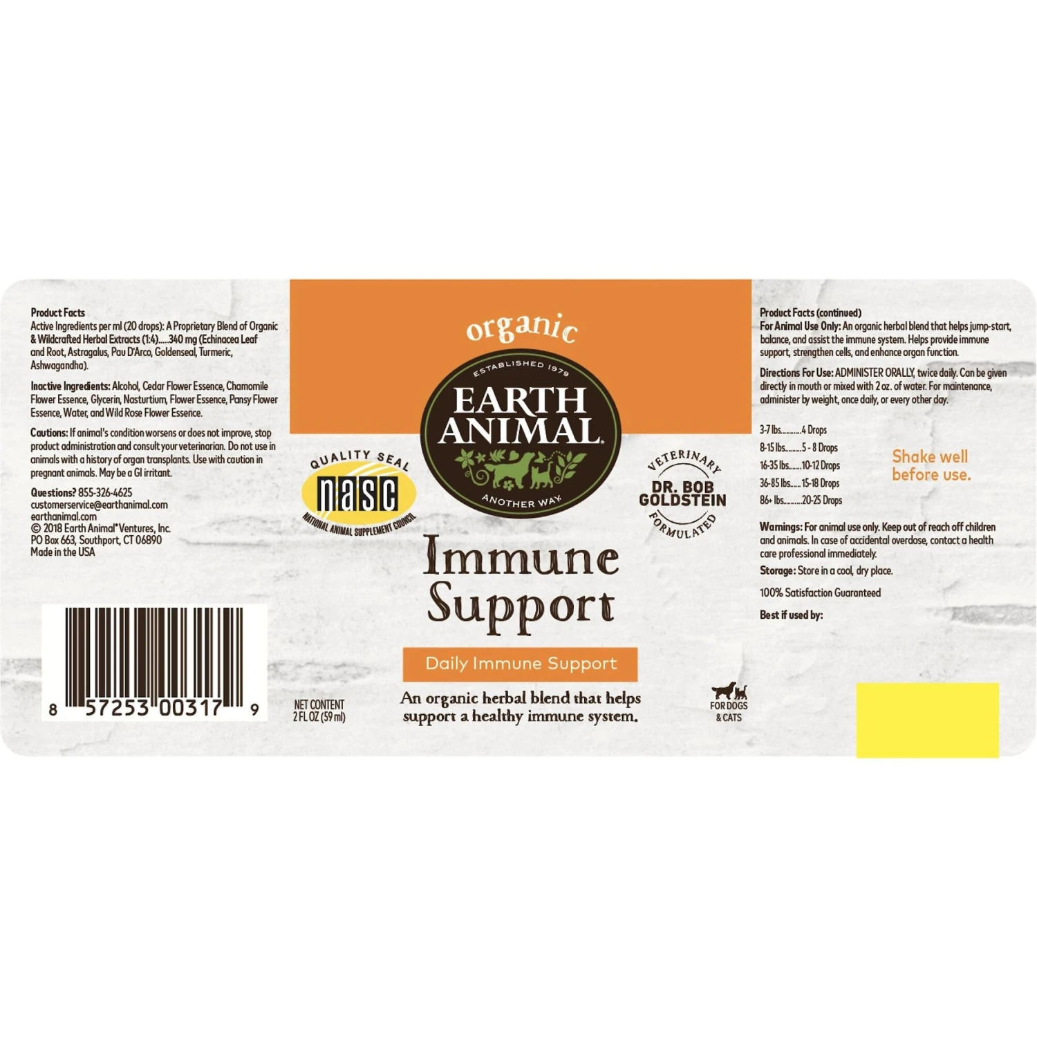 Earth Animal Natural Remedies Immune Support Liquid Homeopathic Immune Supplement For Dogs & Cats, 2-oz Bottle