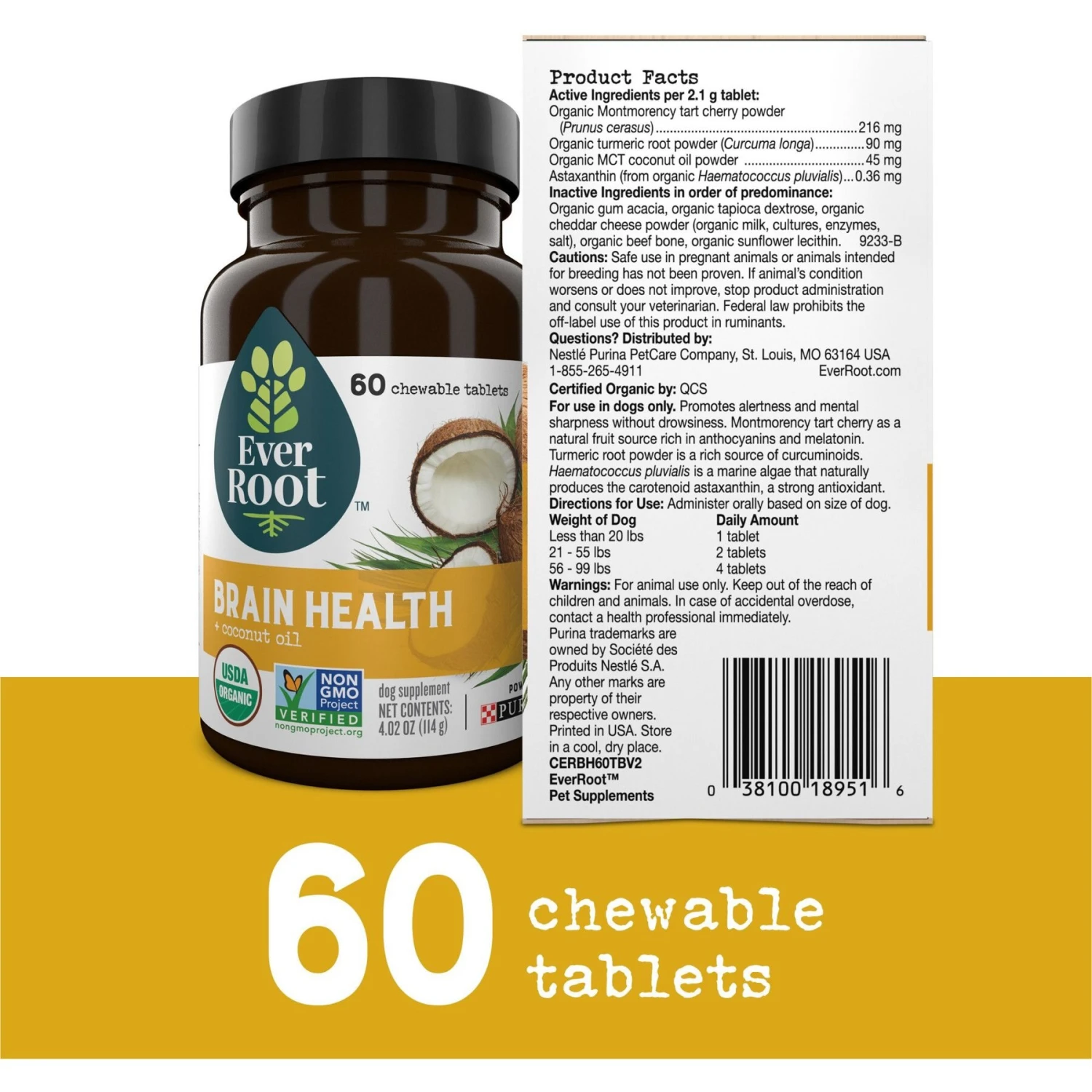 EverRoot By Purina Brain Health + Coconut Oil Chewable Tablets Dog Supplement, 60 Count