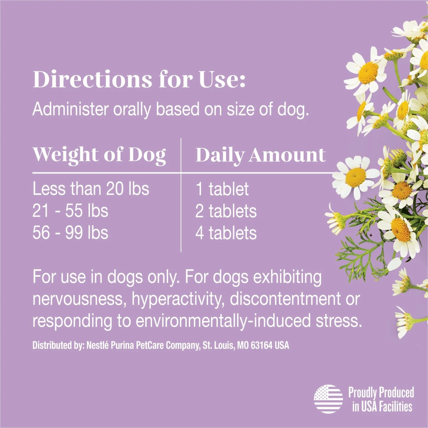 - May provide calming support during storms, fireworks, car rides, separation or other changes in your dog’s daily routine.