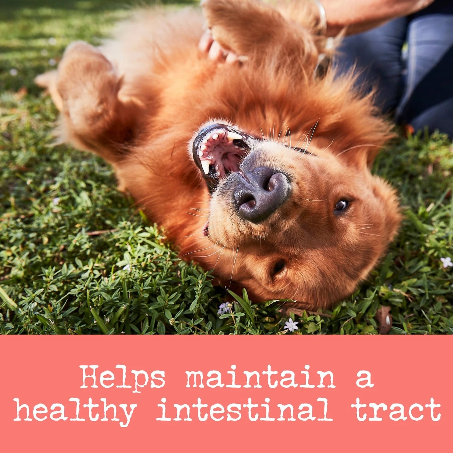 - This dog supplement, including prebiotic fiber from pumpkin and psyllium, supports digestive wellness and includes peanut butter for dogs for a tempting flavor.