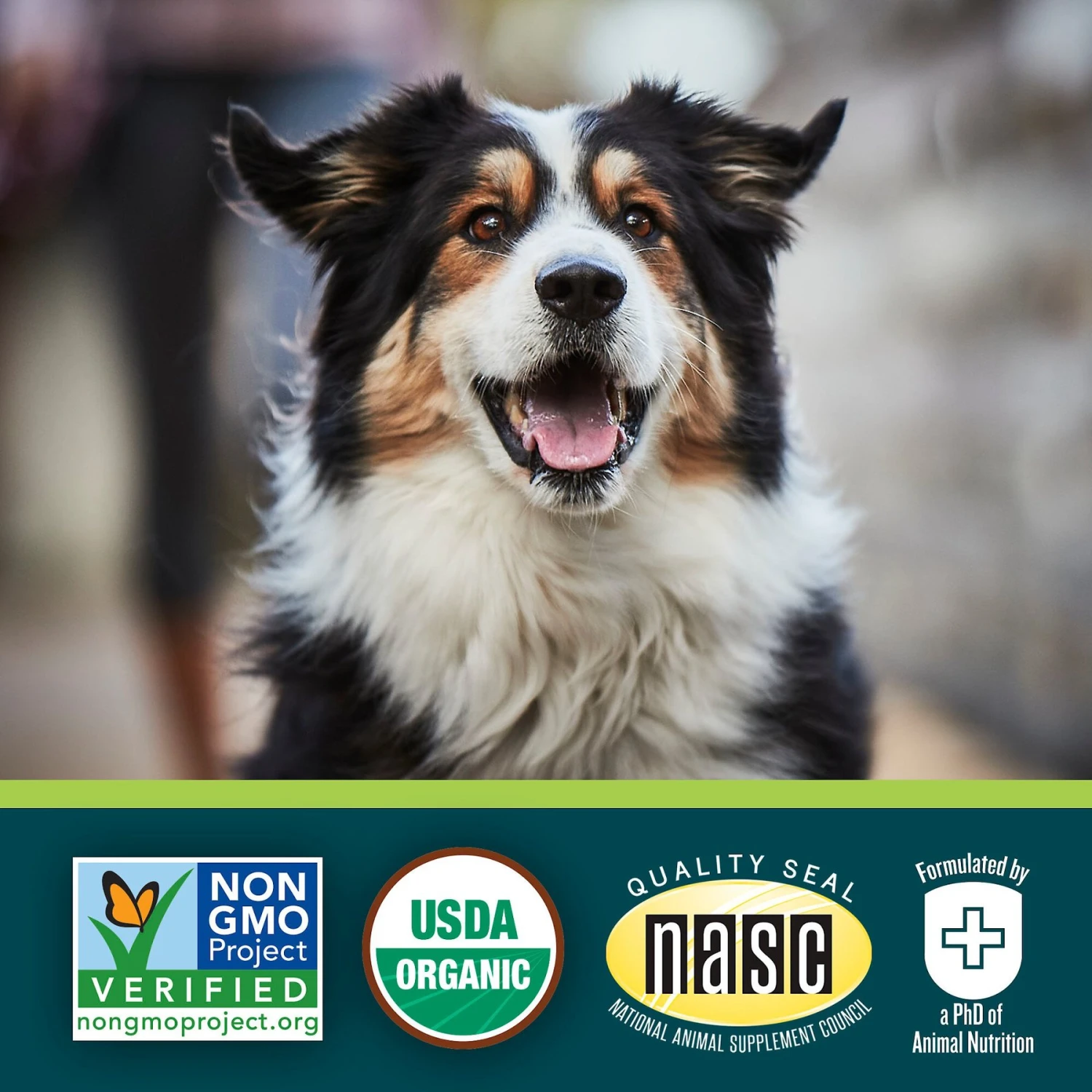 - USDA Certified Organic with fiber digestive supplement for dogs contains no soy, corn, gluten or grains.