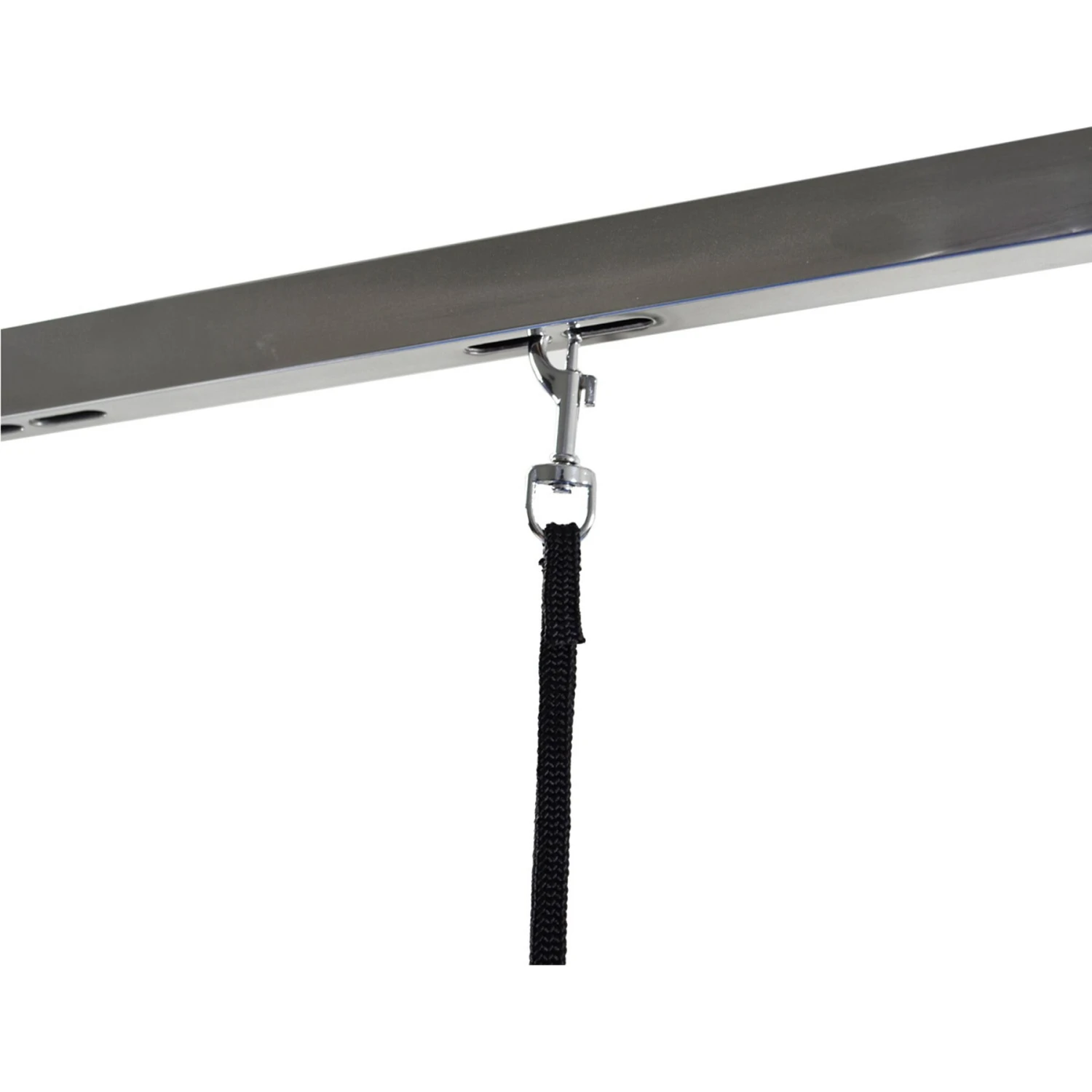 - Includes adjustable height settings and grooming arm with noose and loop.