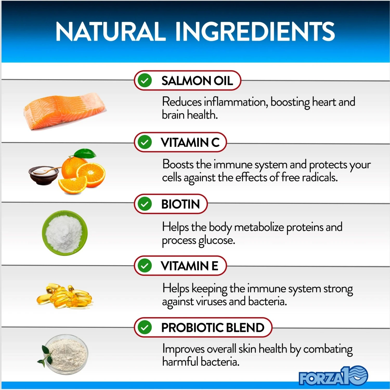 - Salmon oil, biotin and antioxidants help support your furbaby’s skin health and promote a shiny coat.