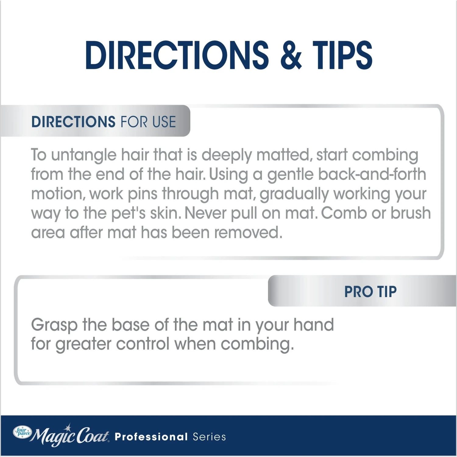 - Reversible quills to easily remove mats from hard to remove areas