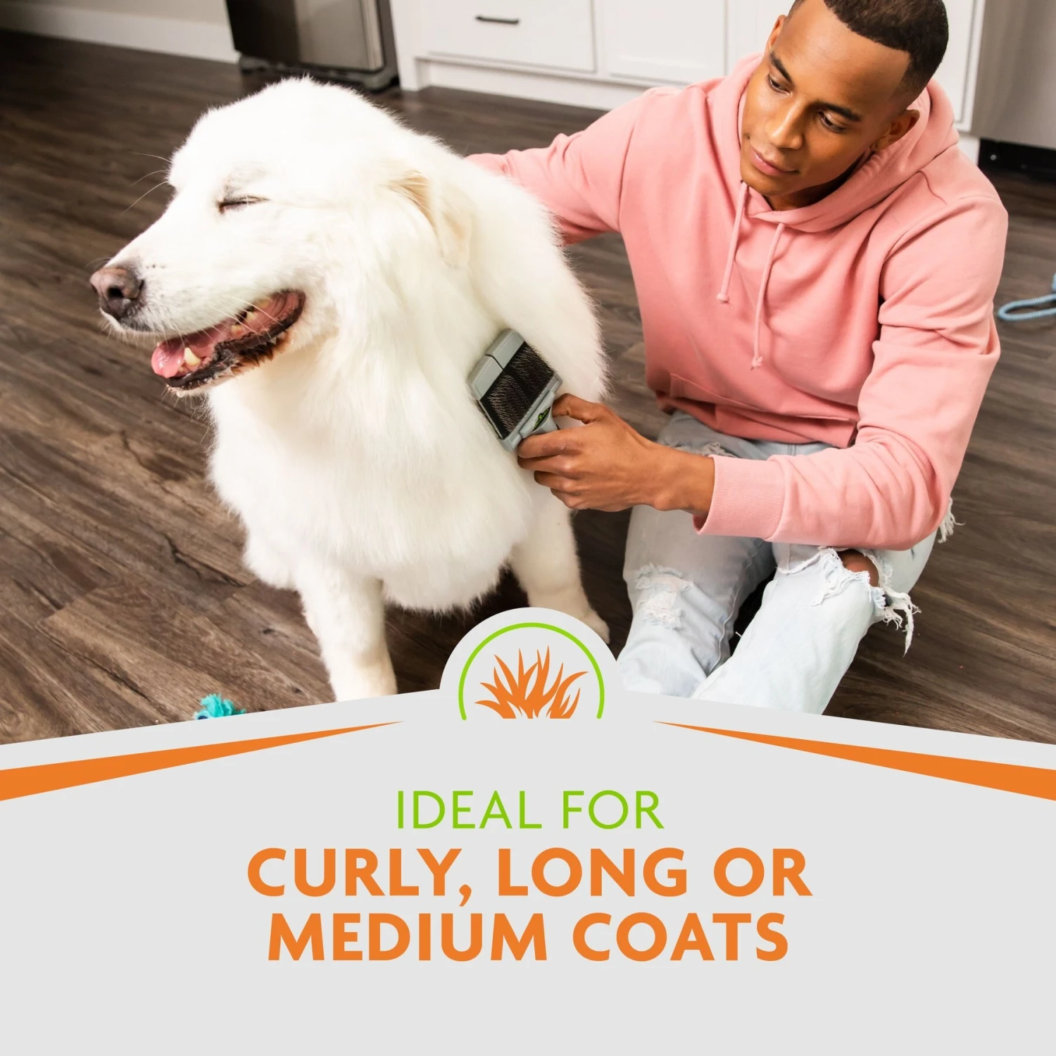 - Straight bristles on one side and bent bristles on the other side, dual flex head design follows the contours of your dog’s body.