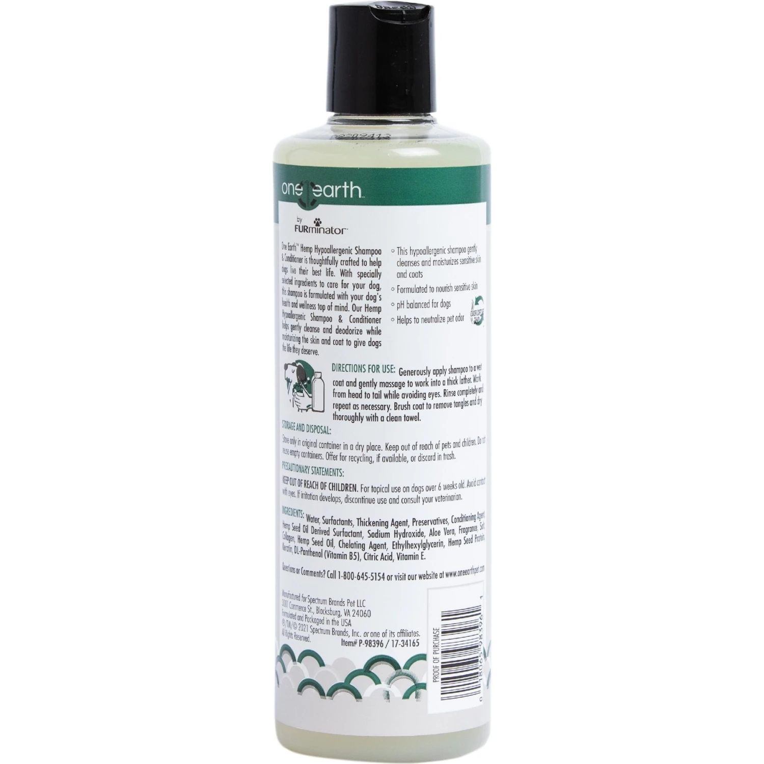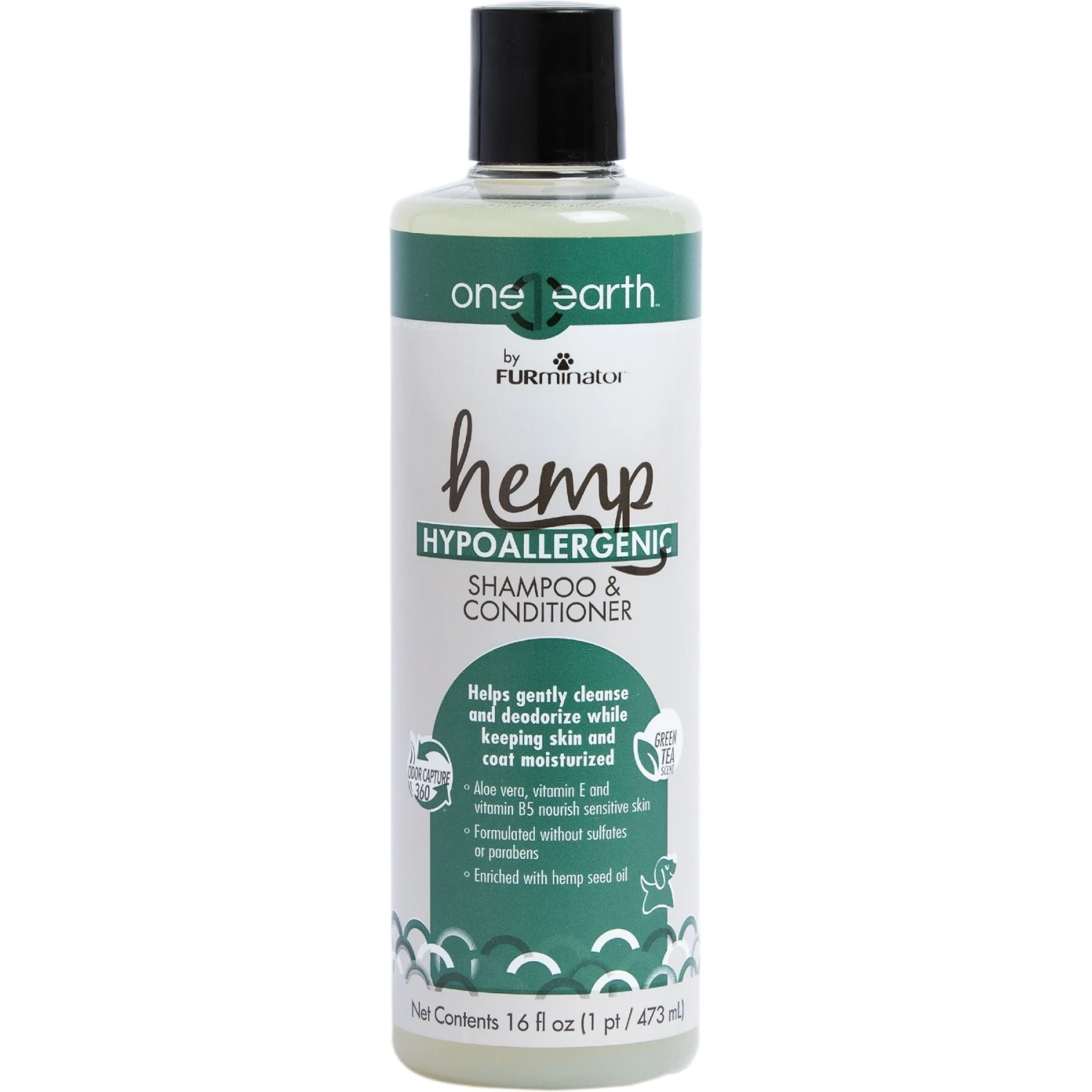 FURminator One Earth Hemp Hypoallergenic Green Tea Scented 2-in-1 Dog Shampoo & Conditioner, Green, 16-oz Bottle