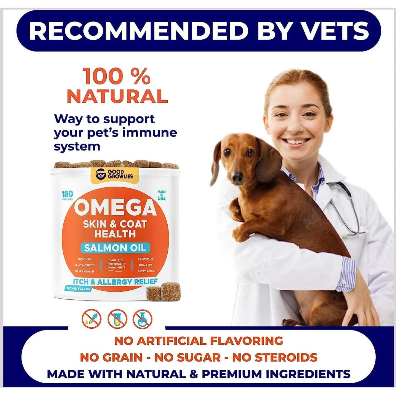 GoodGrowlies Omega 3 Alaskan Fish Oil Dry & Itchy Skin Relief + Allergy Support Chew Supplement For Dogs, 180 Count