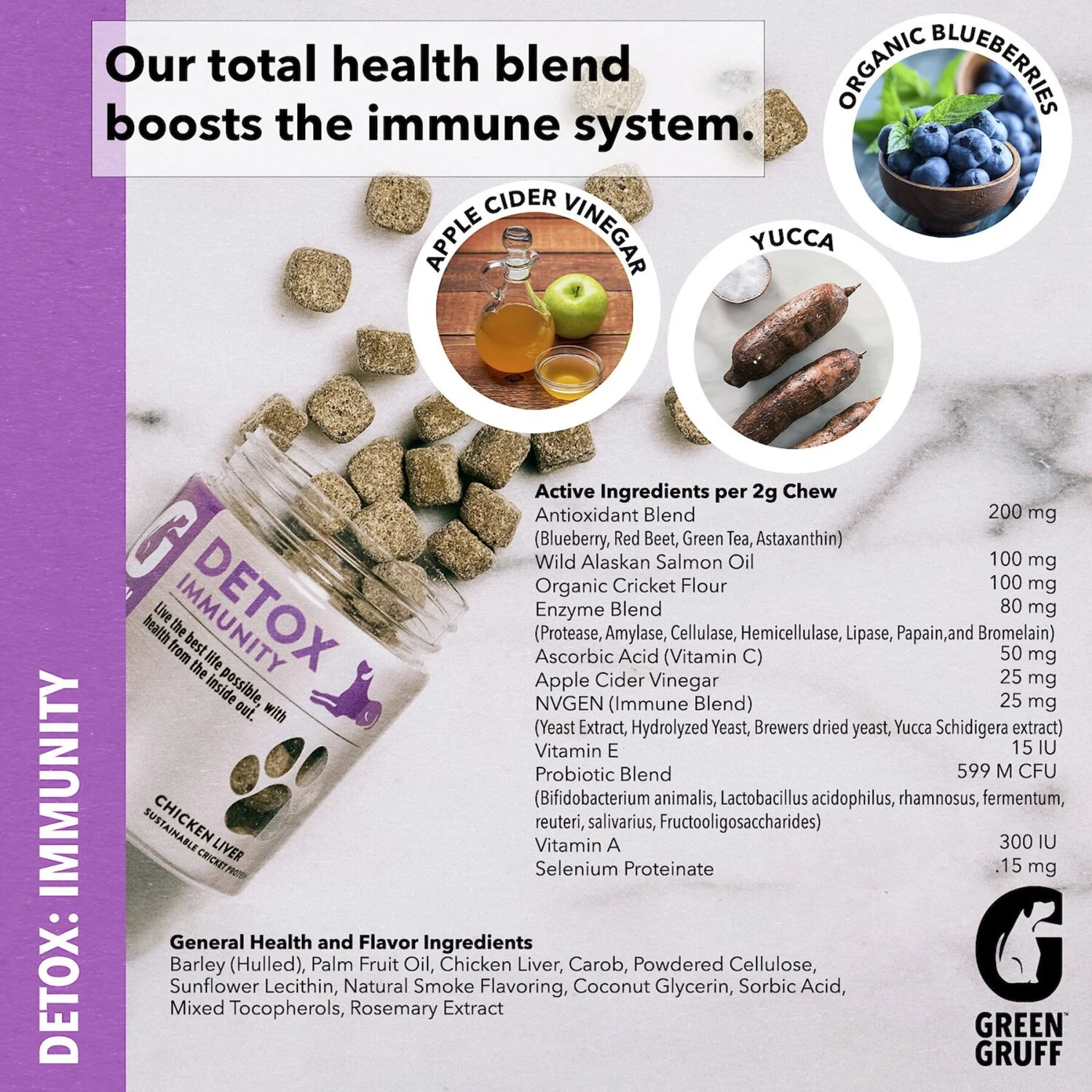 Green Gruff Detox Immunity Support Chicken Liver Flavor Soft Chew Dog Supplement