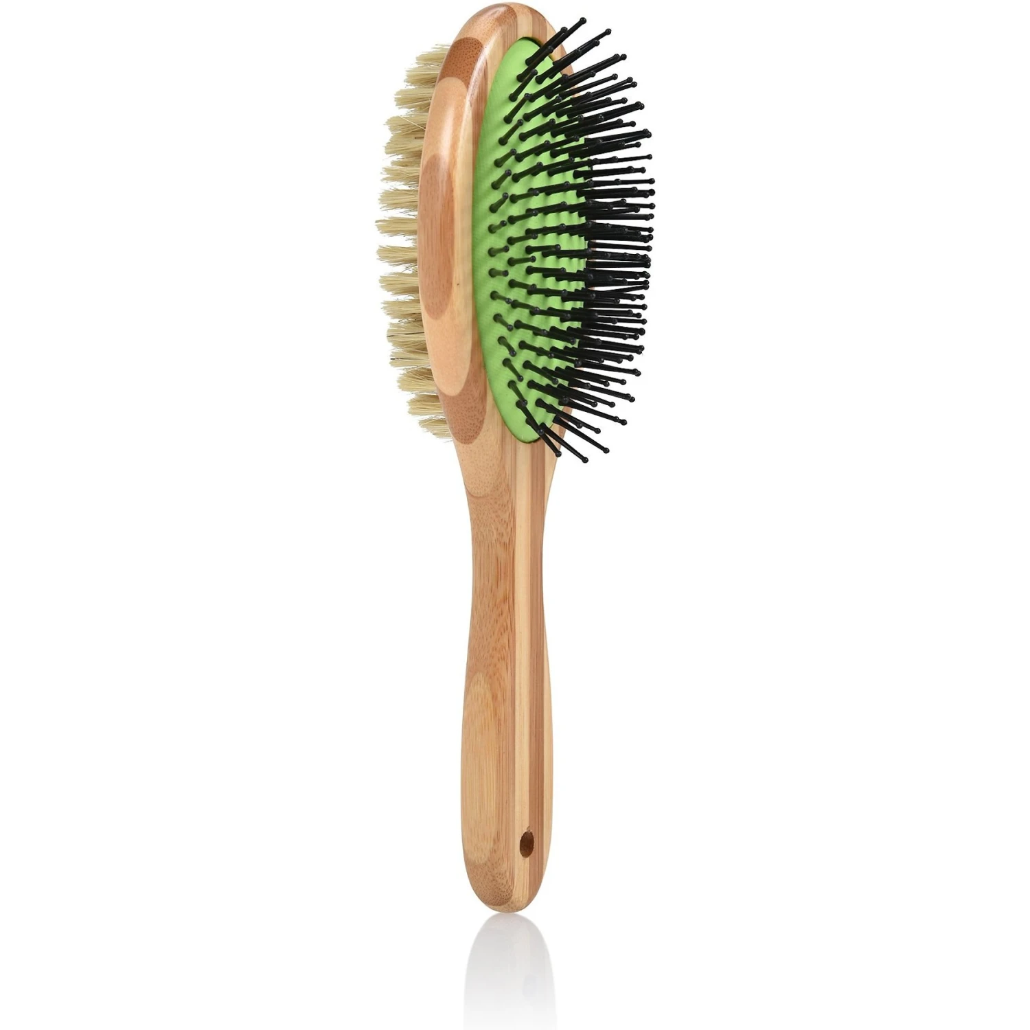 - Dual-side design includes round-tip pins and soft bristles that holistically work together to improve your best bud’s coat.