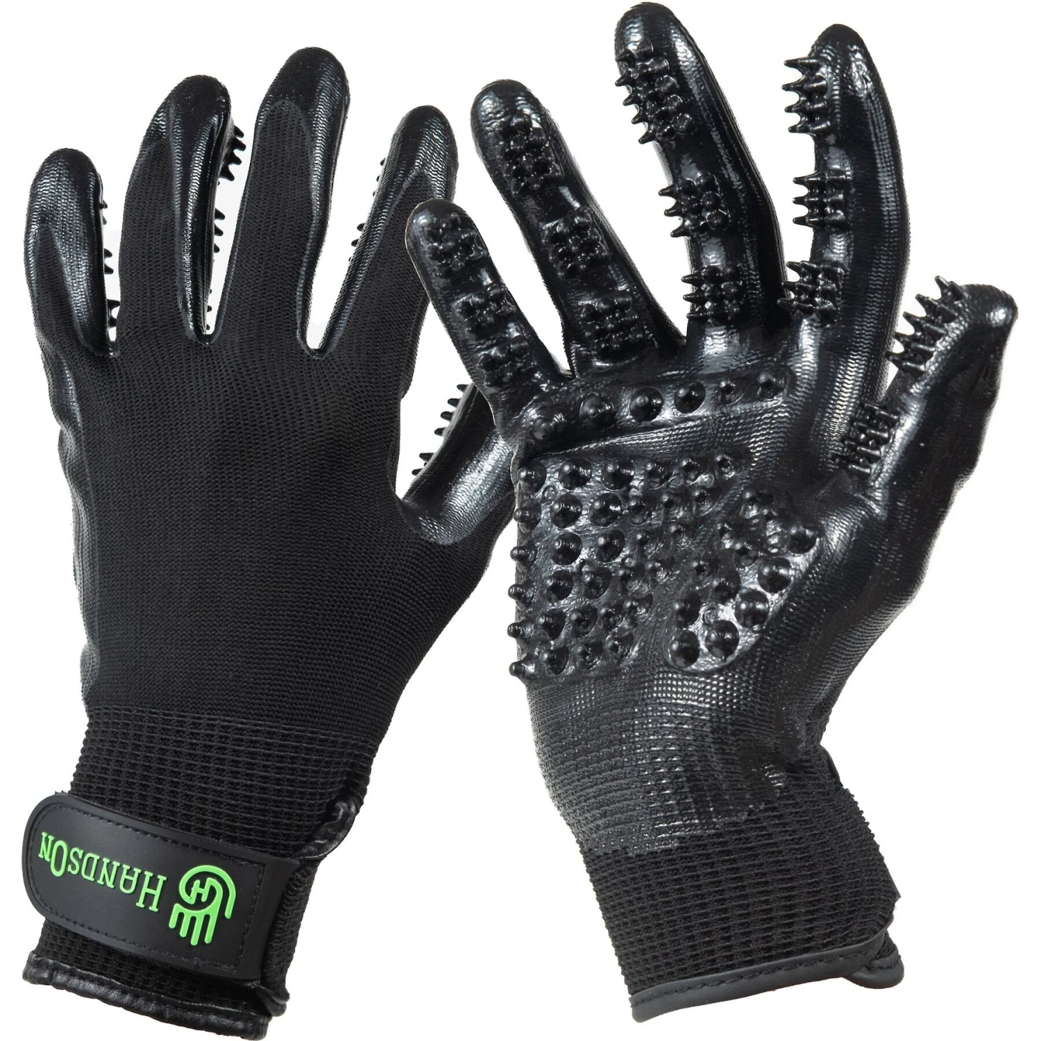 - Doubles as a de-shedder, and hair does not stick to gloves, even when wet.