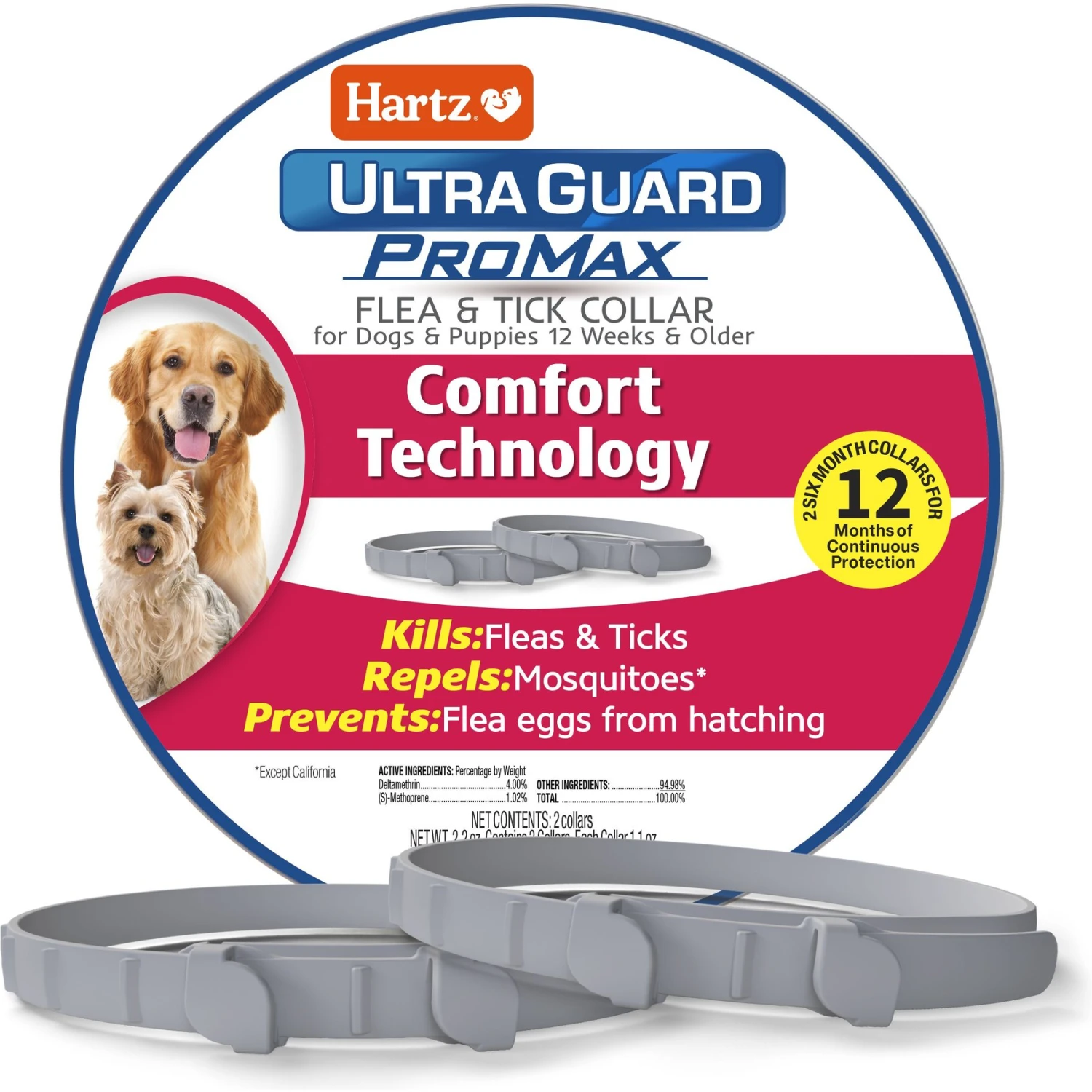 Hartz Ultra Guard ProMax Flea & Tick Collar For Dogs, 2 Collars (12-mos. Supply)