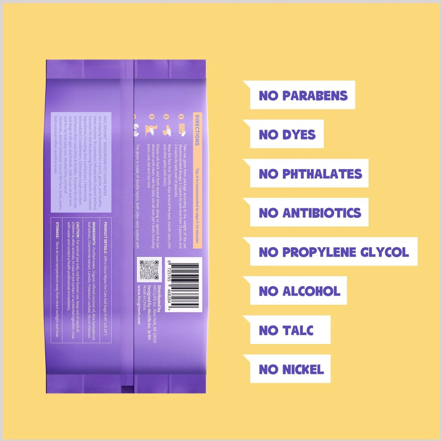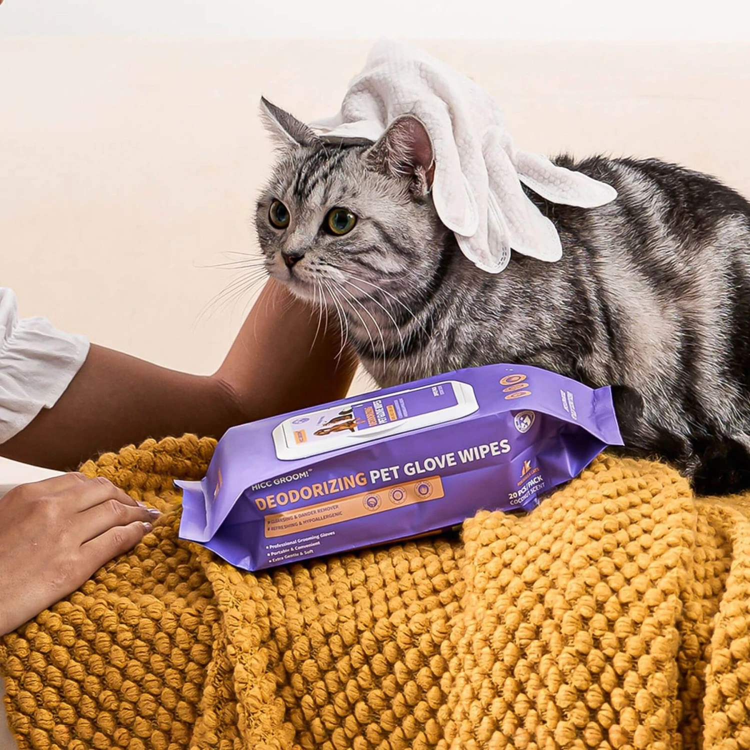 HICC PET Deodorizing Cat & Dog Glove Wipes, 20 Count