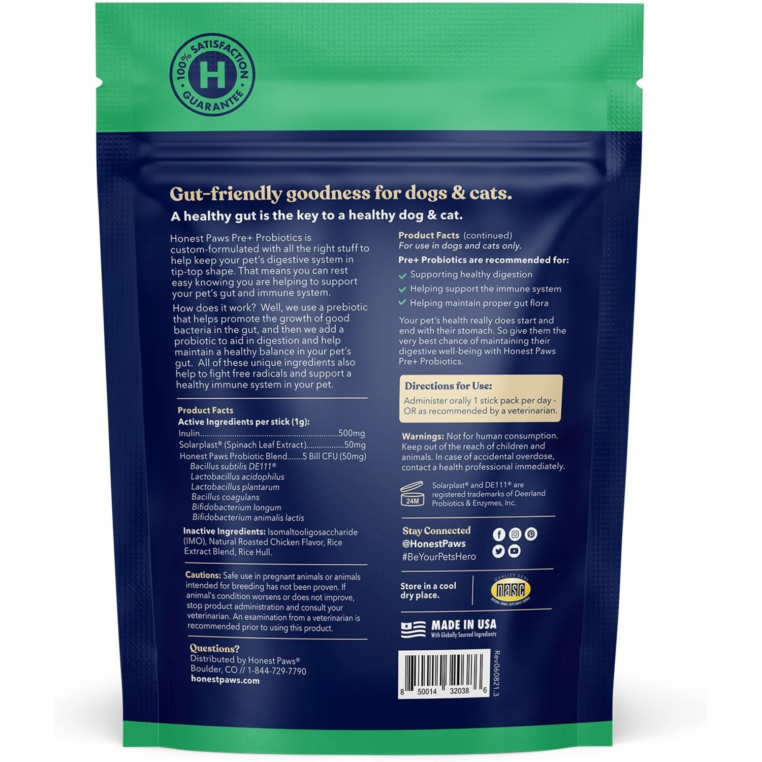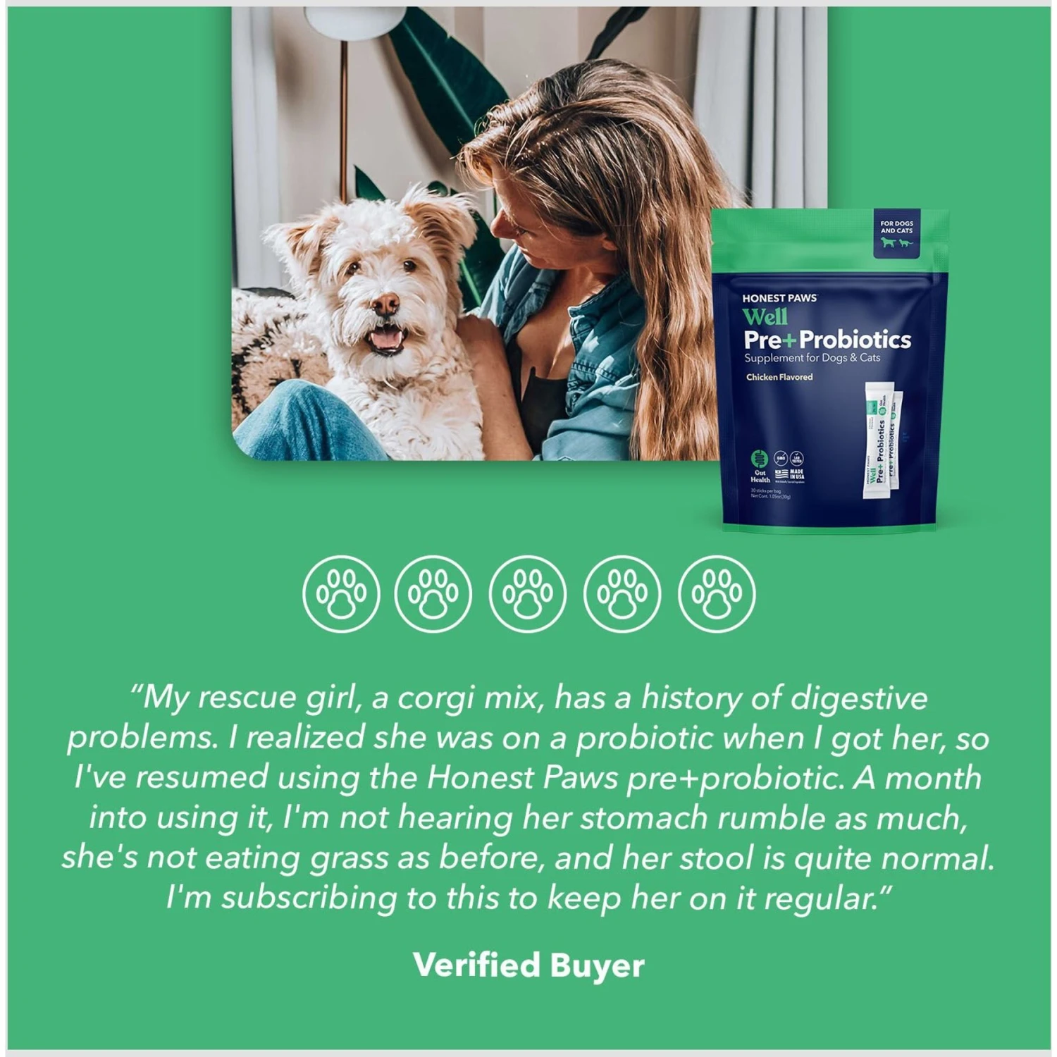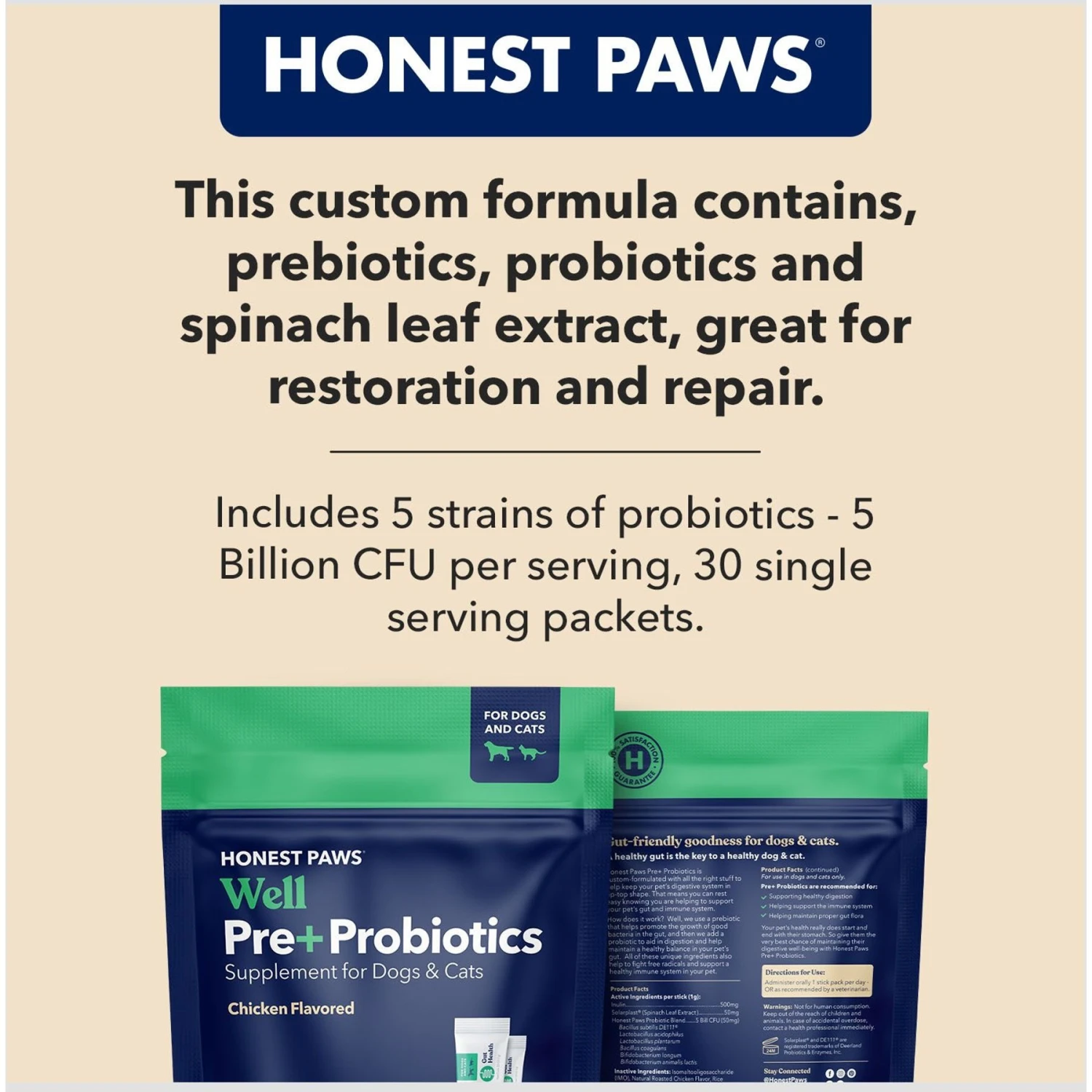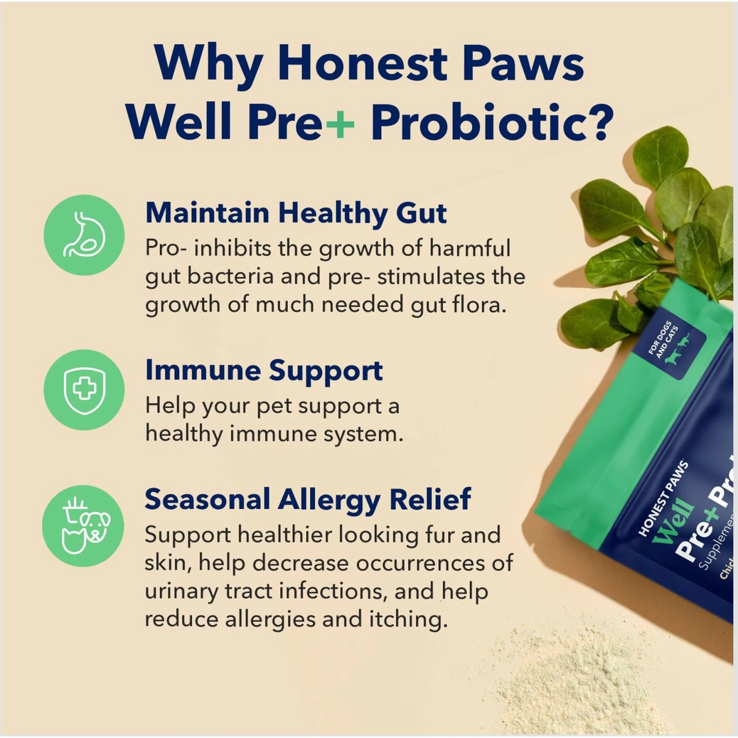 Honest Paws Well Pre+ Probiotic Digestive Support Chicken Flavored Powder Supplement For Dogs & Cats