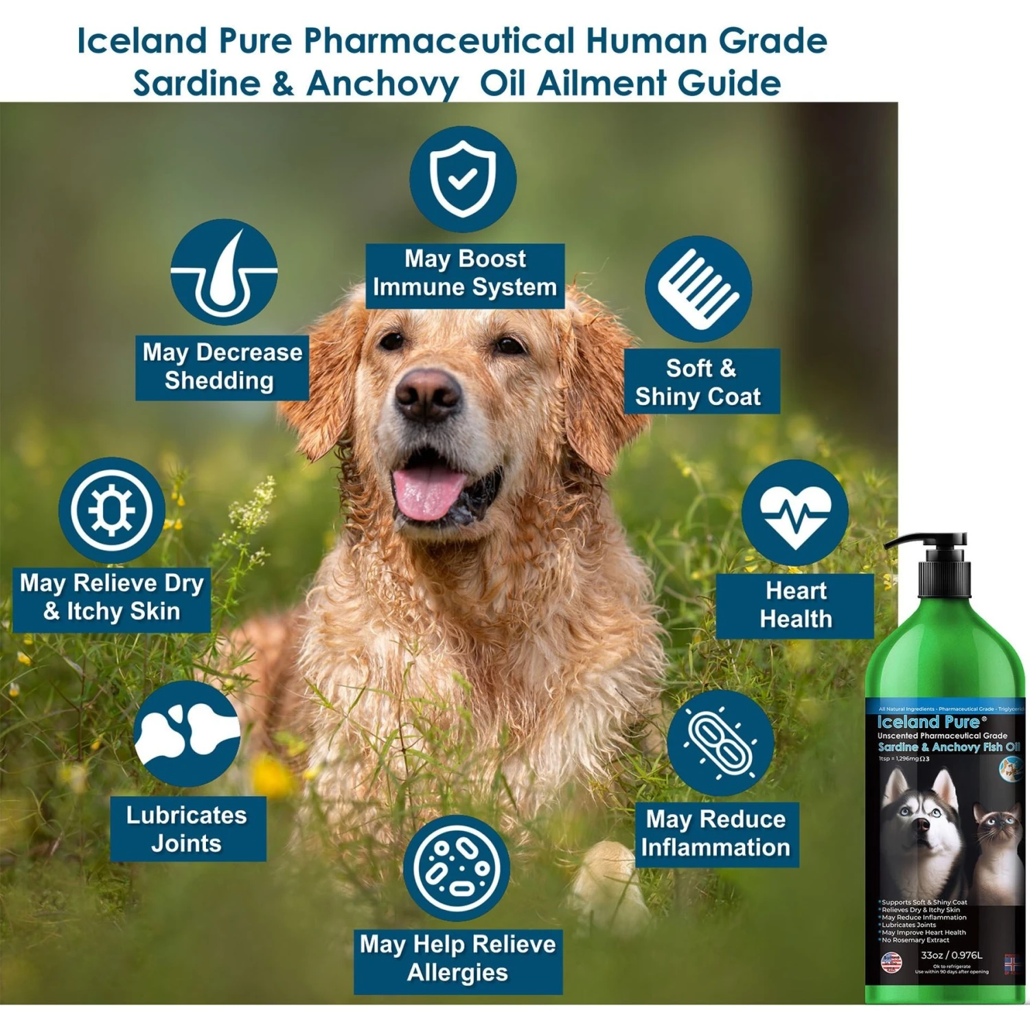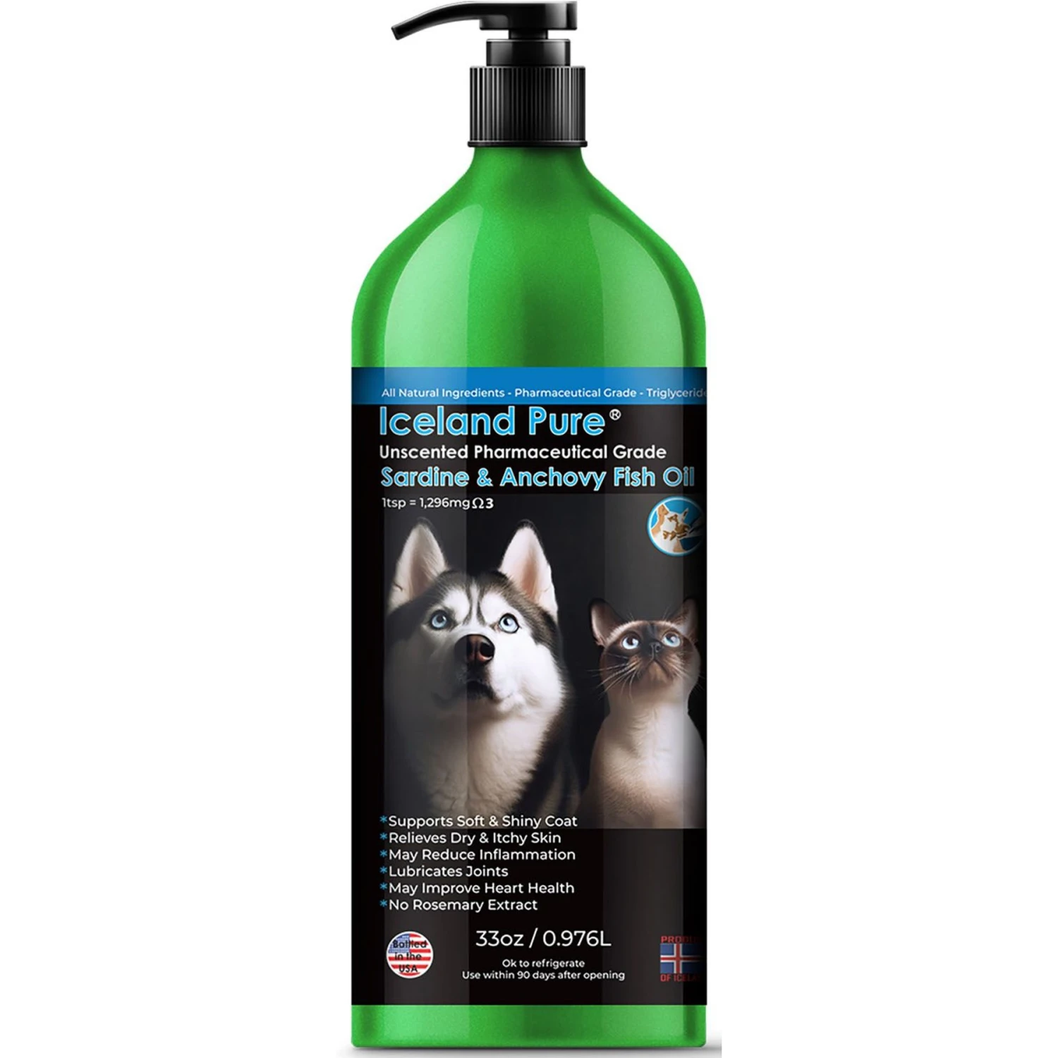 Iceland Pure Pet Products Unscented Pharmaceutical Grade Sardine & Anchovy Oil Liquid Dog & Cat Supplement