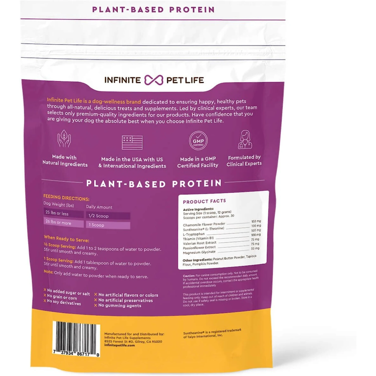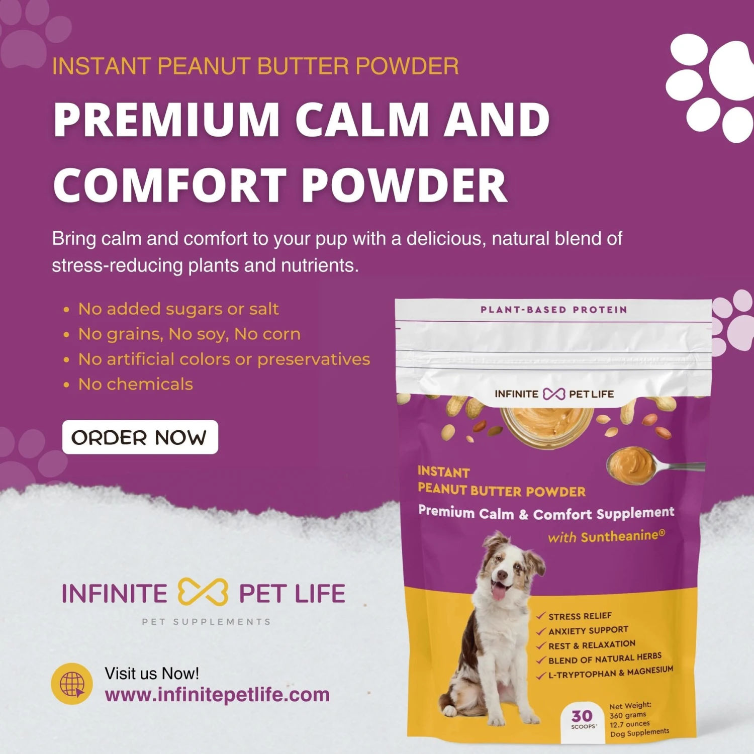Infinite Pet Life Premium Calm & Comfort Powder Supplement For Dogs, 30 Servings