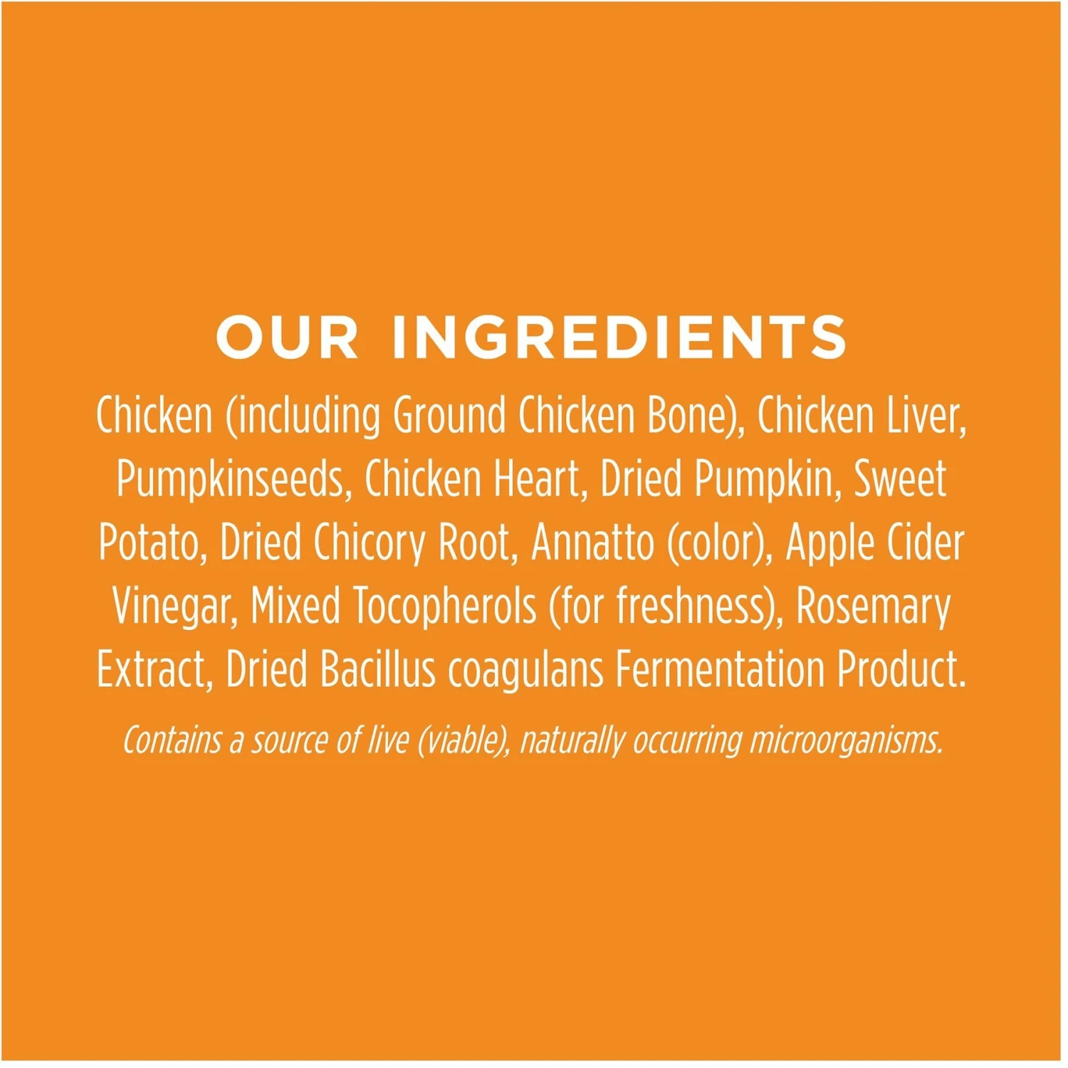 Instinct Freeze Dried Raw Boost Mixers Grain-Free Gut Health Recipe Dog Food Topper, 5.5-oz bag—With Instinct Freeze Dried Raw Boost Mixers Grain-Free Gut Health Recipe Dog Food Topper, you can top your dog’s kibble with raw! This delicious food topper provides fiber and live, natural probiotics to help maintain digestive health in every tasty bite. Combining cage-free chicken with vibrant, functional, whole-food ingredients like pumpkin and sweet potatoes, it’s 100% freeze-dried, so it’s bursting with flavor and nutrition. Plus, it’s made in the USA with zero grains, corn, wheat, soy, potato or anything artificial.