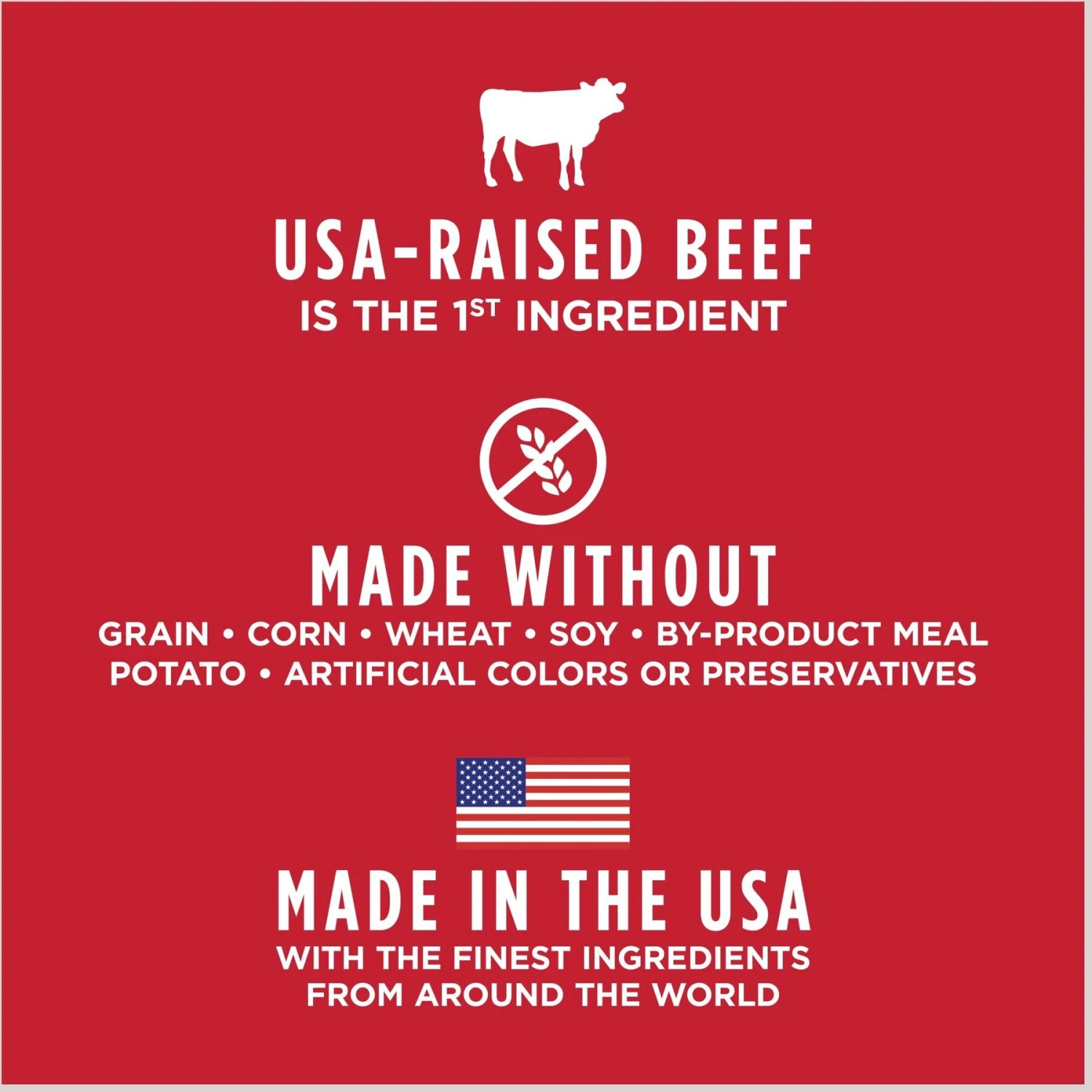 - USA-raised beef is the first ingredient so it’s packed with animal protein for strong, lean muscles.