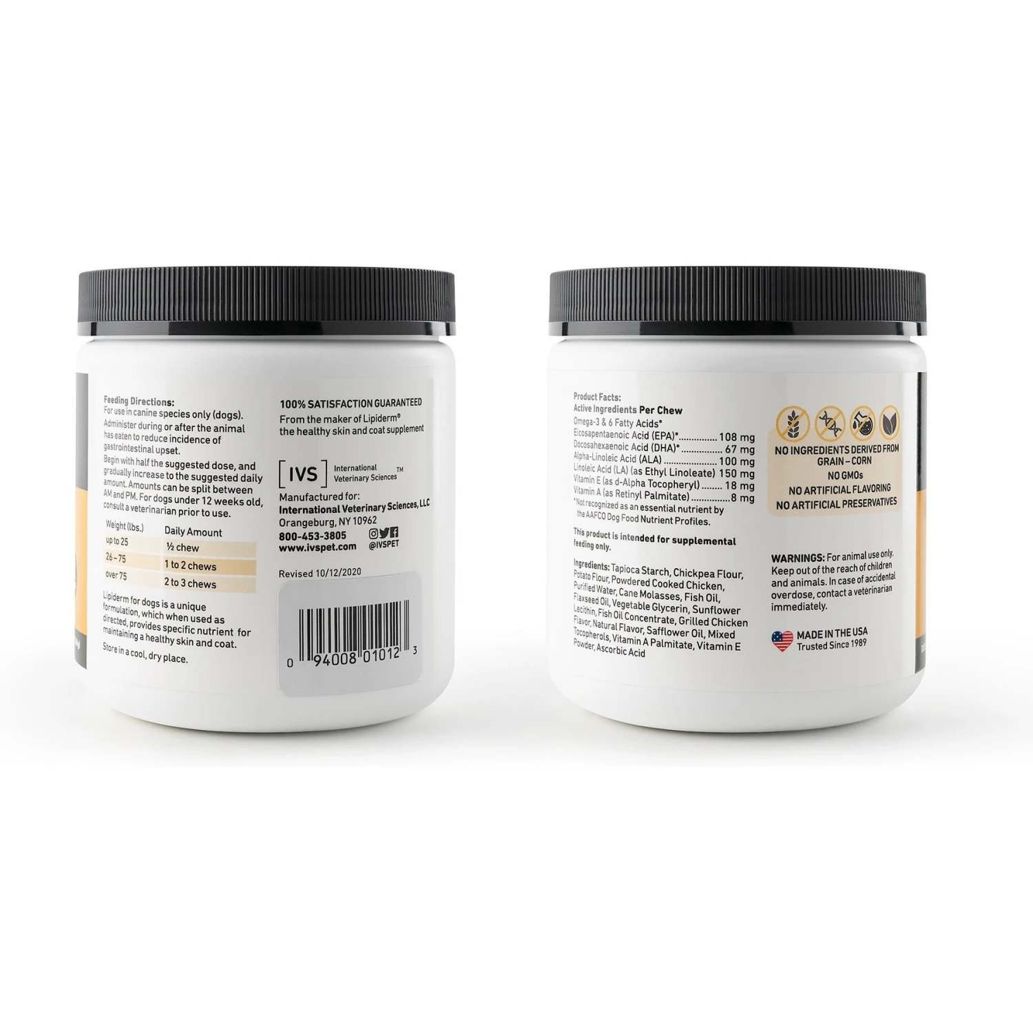 International Veterinary Sciences Lipiderm Chicken Flavor Skin & Coat Health Chew Dog Supplement, 90 Count