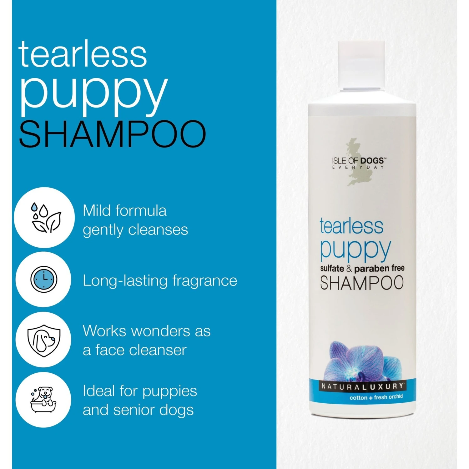 - Ideal for a puppy’s sensitive skin, won’t irritate eyes or skin