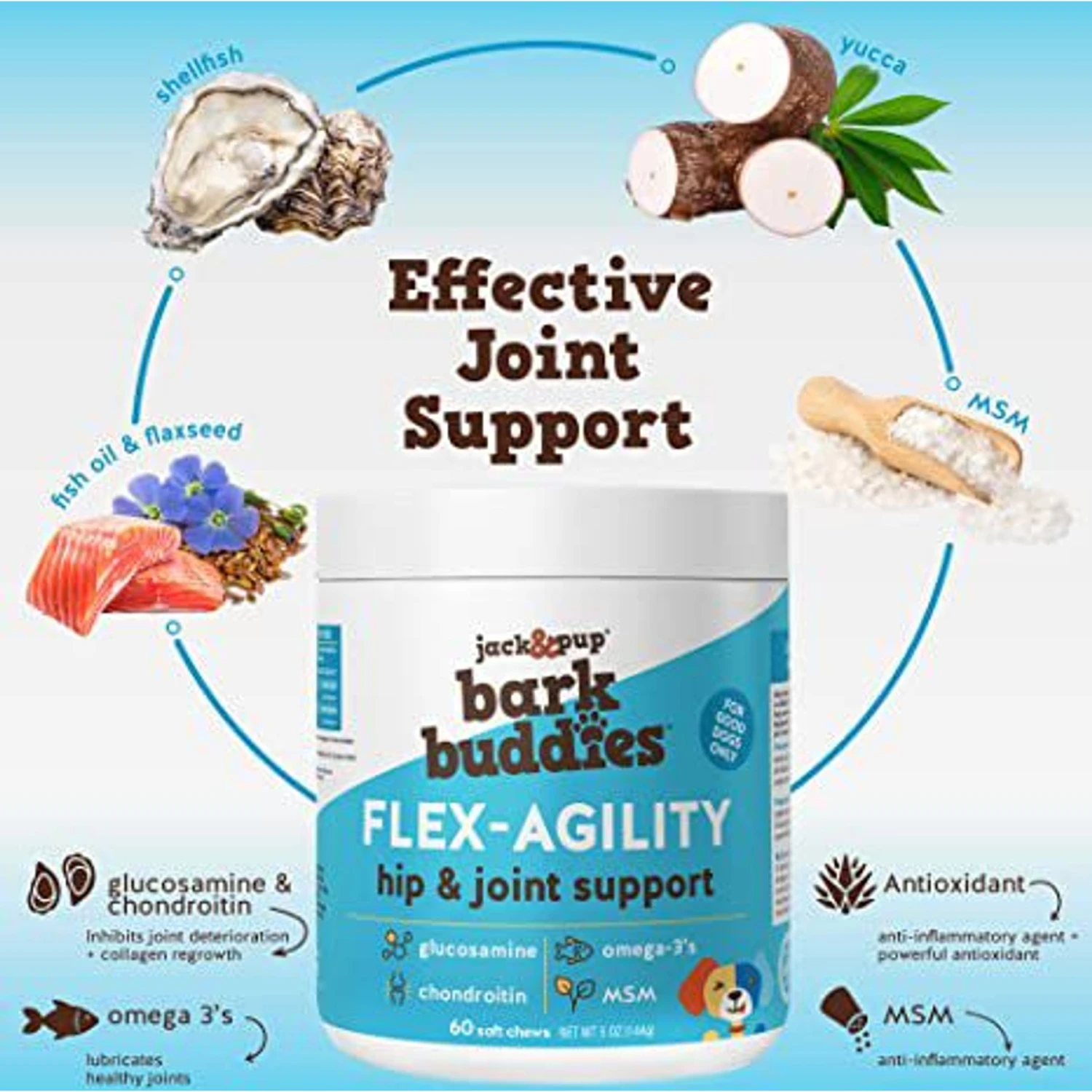 Jack & Pup Bark Buddies Flex-Agility Hip & Joint Dog Supplement, 60 Count